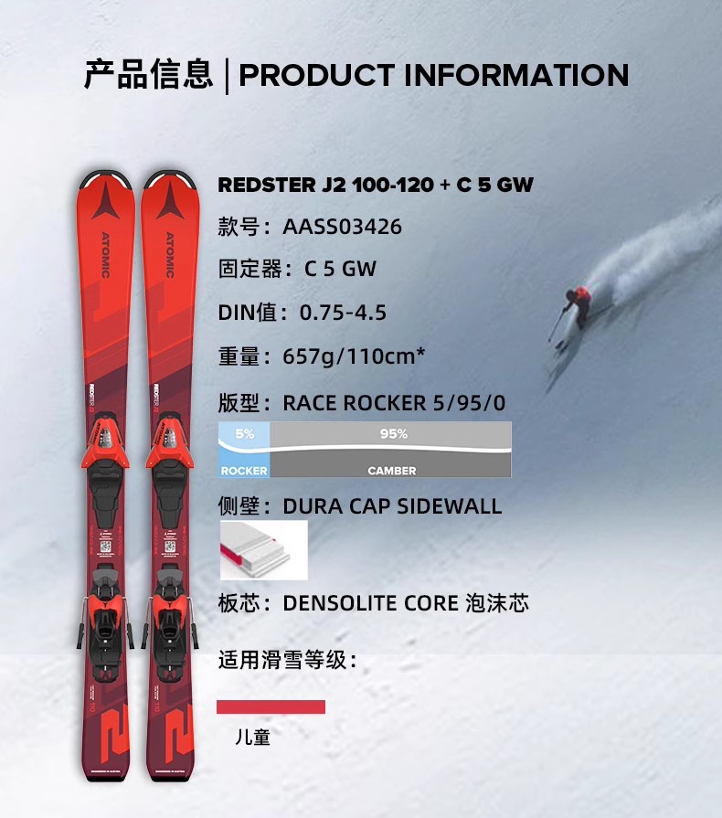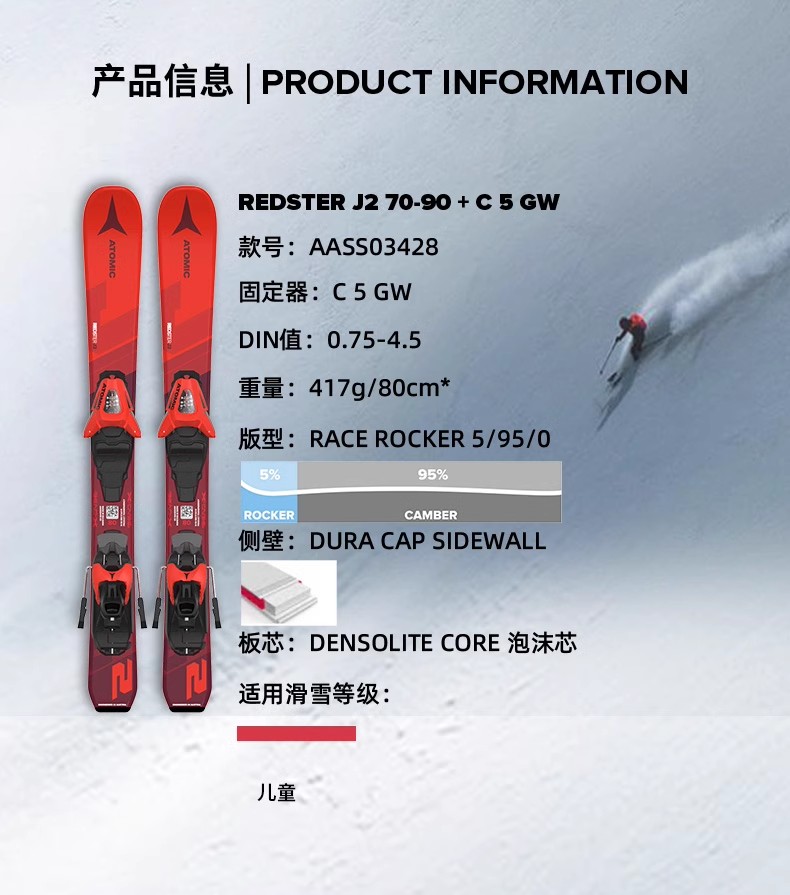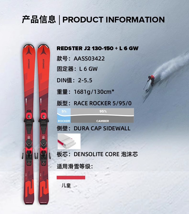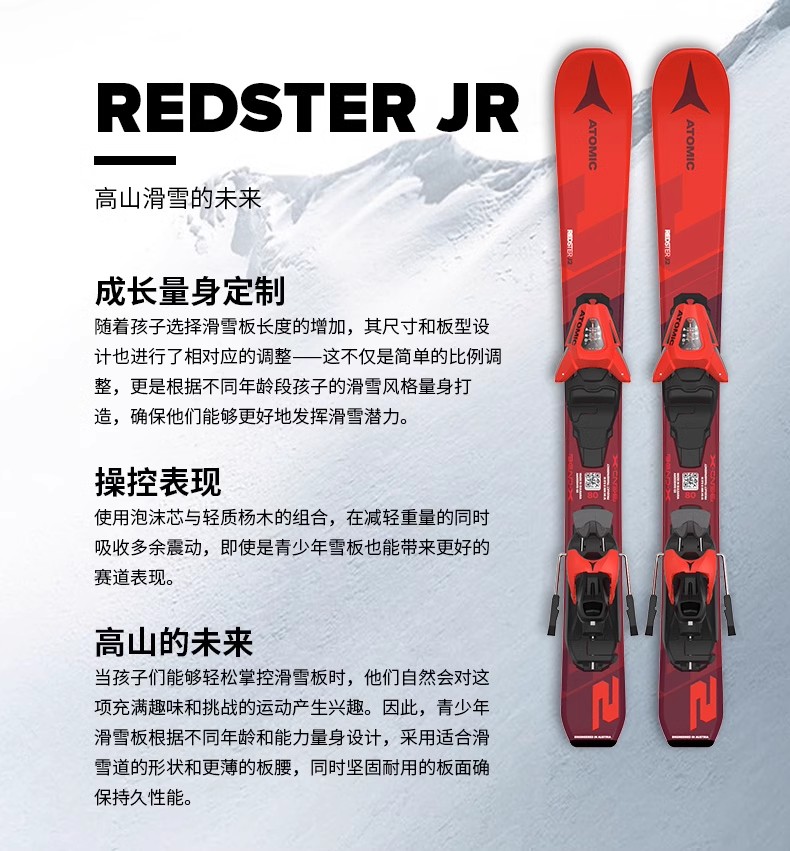 【七折特卖】ATOMIC阿托米克双板滑雪2425雪季REDSTER系列青少年儿童滑雪板 AASS03422
