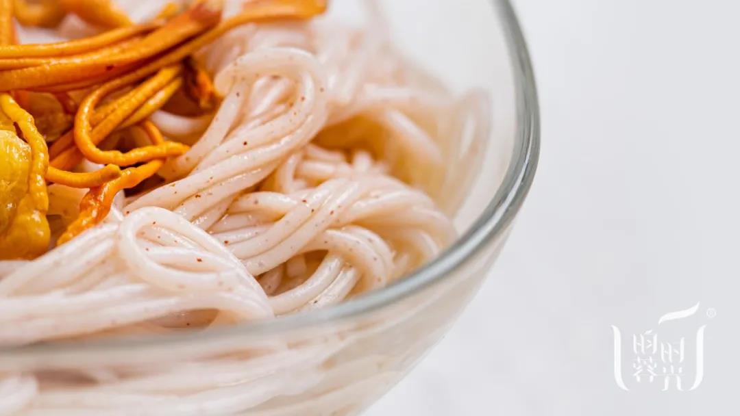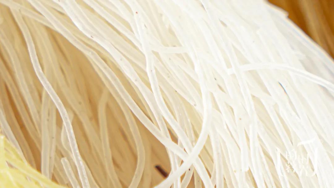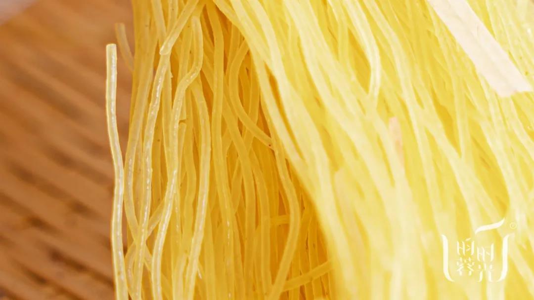 白而有光泽的米线,细长柔韧,质地软硬兼具,弹性和韧劲在唇齿间暗戳戳较劲,米香浓烈。
