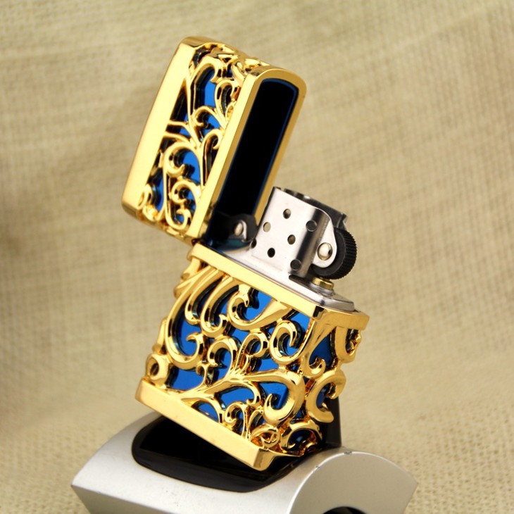 【打火机】。铜壳首领防风煤油打火机CF0953J盔甲唐草2金色