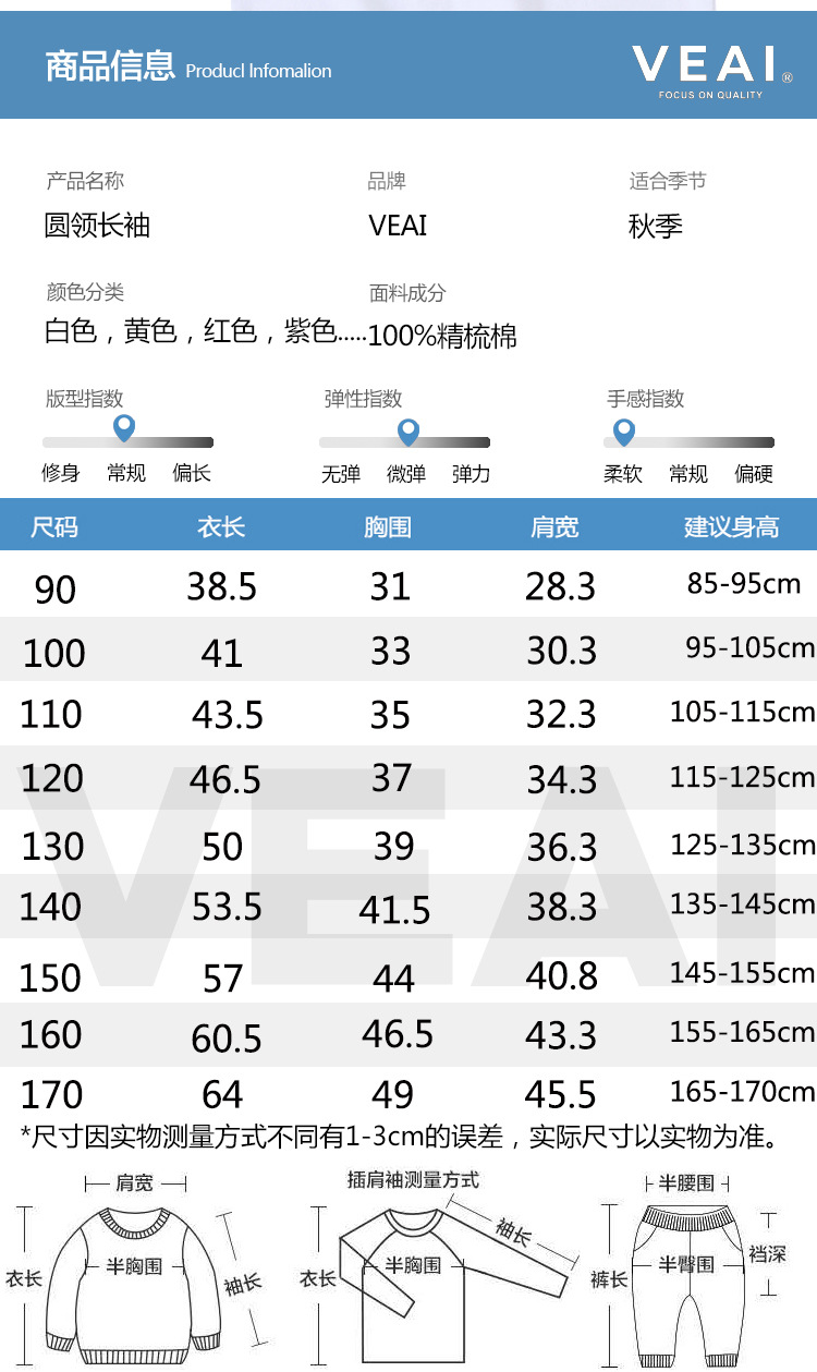 【母婴】A类打底衫长袖t恤男女童t恤纯棉上衣中大童t恤纯色童装