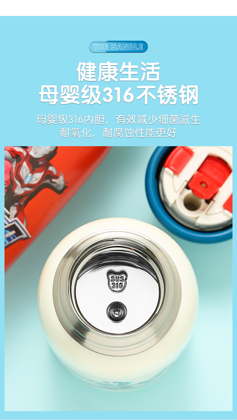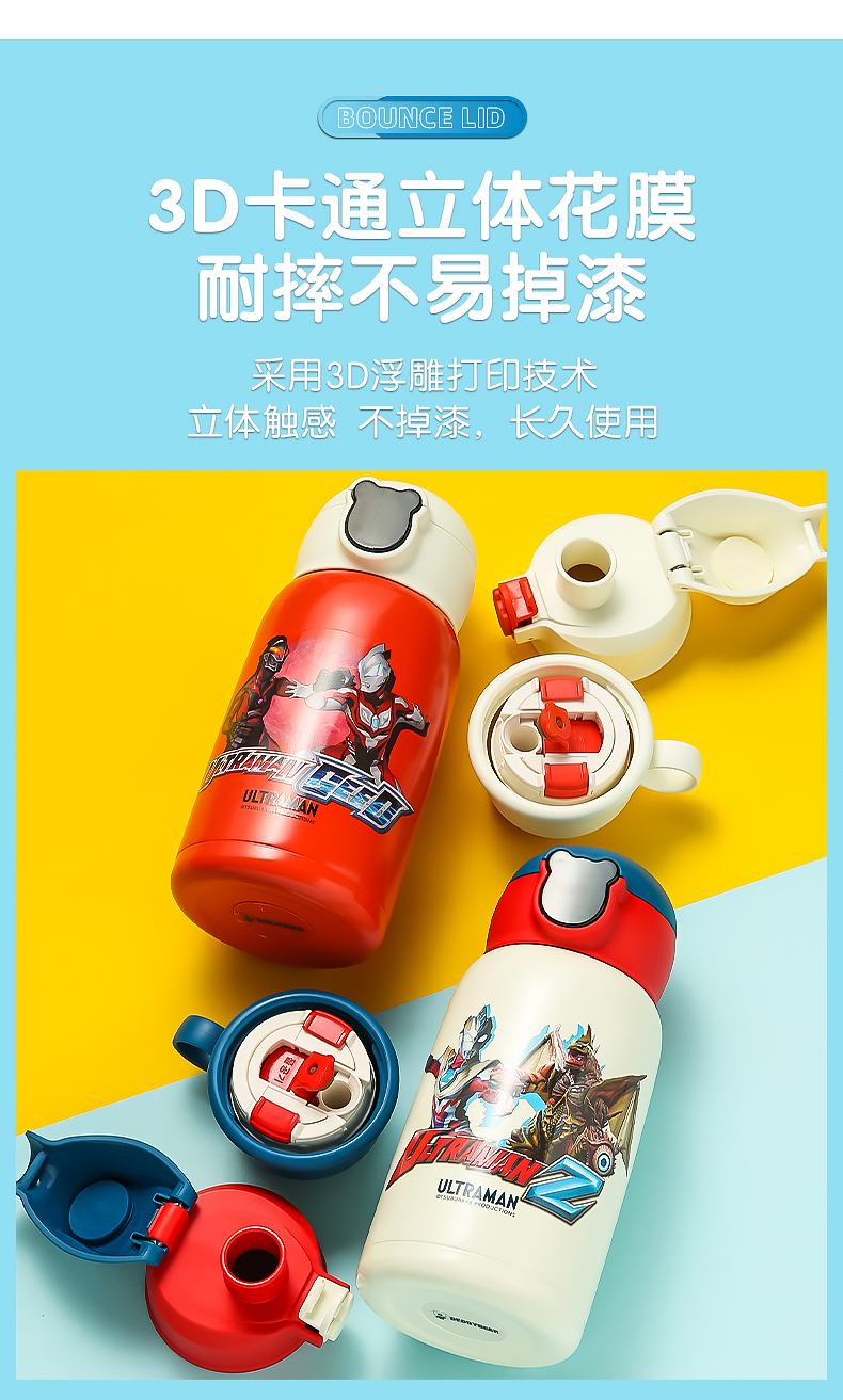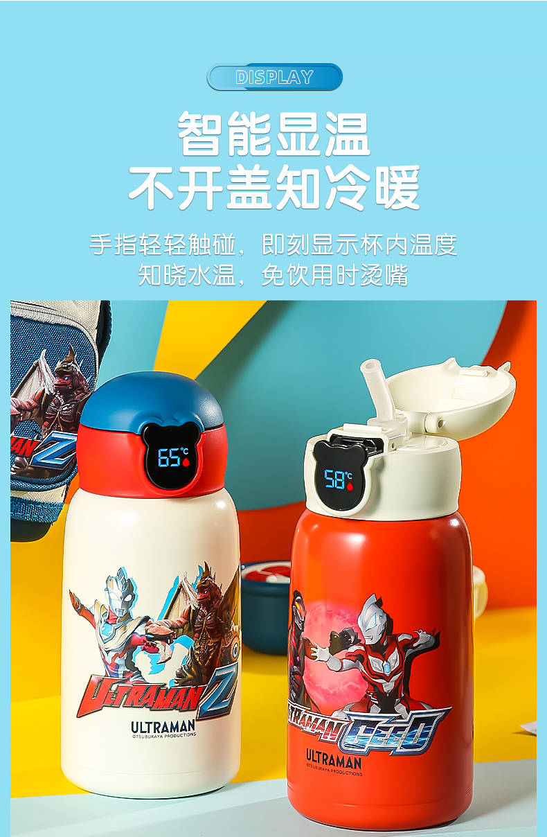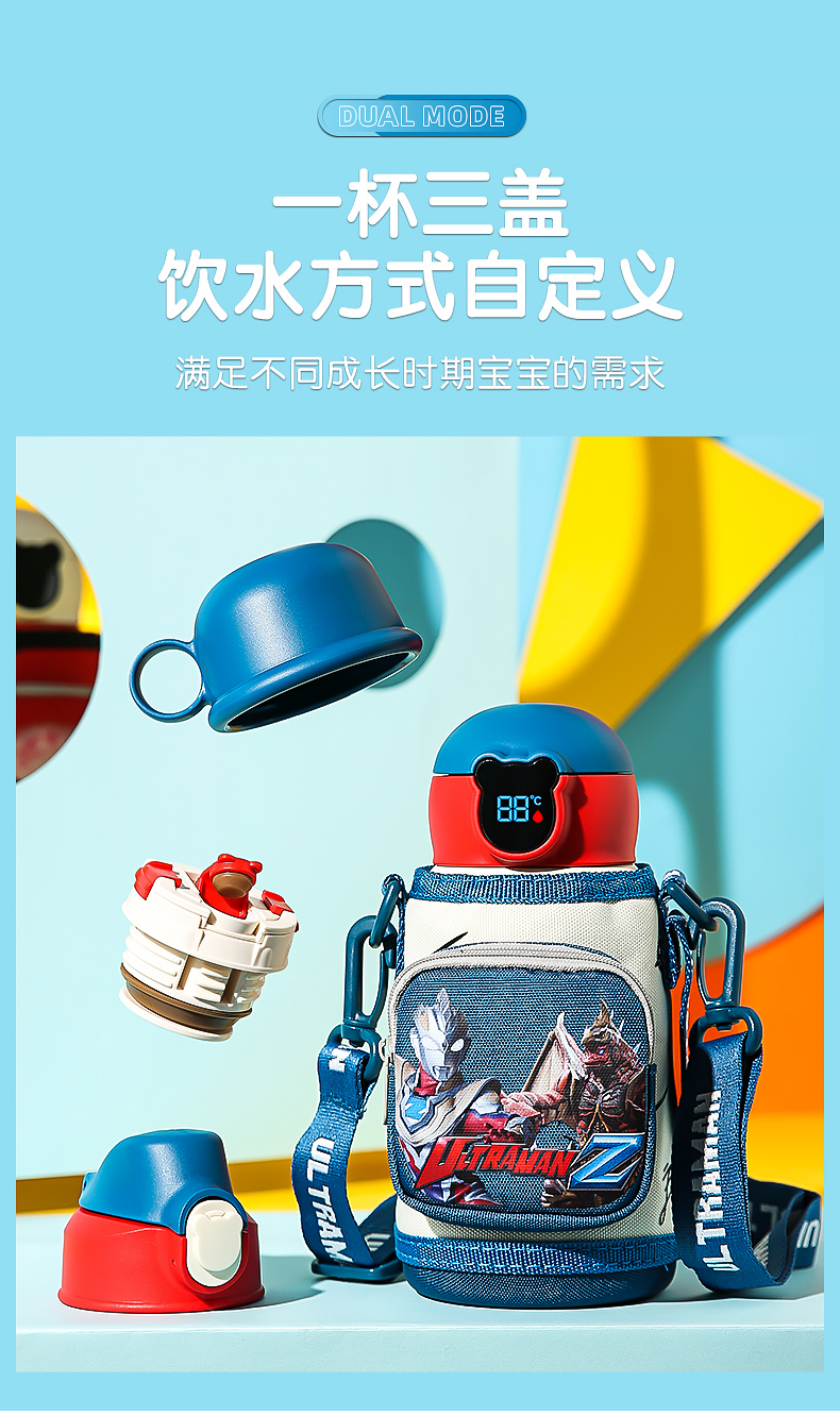 9楼母婴生活馆 BEDDYBEAR杯具熊儿童智能显温保温杯奥特曼联名大容量三盖水壶630mL 吊牌价:238元 活动价:198元