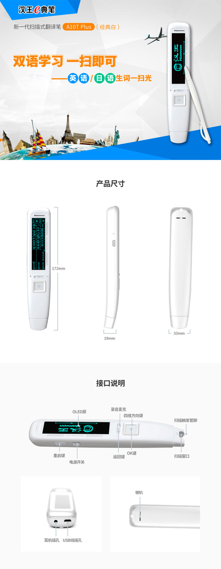 汉王e典笔 语音版扫描翻译笔 电子词典英汉翻译机
