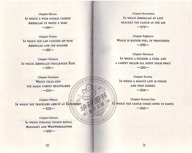 推荐理由: 1.宫崎骏动画《哈尔的移动城堡》原著小说后续之作,不可不读; 2.用词浅显易懂,对词汇量要求较低,适合中学及以上水平的读者阅读; 3.印刷清晰,字体行间距较大,便于阅读,书本轻巧,方便携带。 Grade 6 Up—In this sequel to Howl’s Moving Castle, Jones once again exercises her talent for humor in a lively fantasy adventure. It is not necessary to read Howl first; the story stands strongly on its own. In fact, fans of Jones’ earlier book may be puzzled at first as to what the connection could be… until they glimpse hovering on the horizon a castle like cloud… or is it a cloud like castle? At any rate, the story begins as Abdullah, a humble carpet merchant in the marketplace of Zanzib, acquires a flying carpet and lands in the midst of a series of fantastic adventures. The cast of characters includes an evil djinn, beautiful princesses, a genie in a bottle, women-turned-cats, and soldiers-turned-frogs. This is the Arabian Nights with a twist. Readers may be breathless from the rapid changes of scene and quick pace of events, but they won’t put down the book until they figure out all its secrets.
