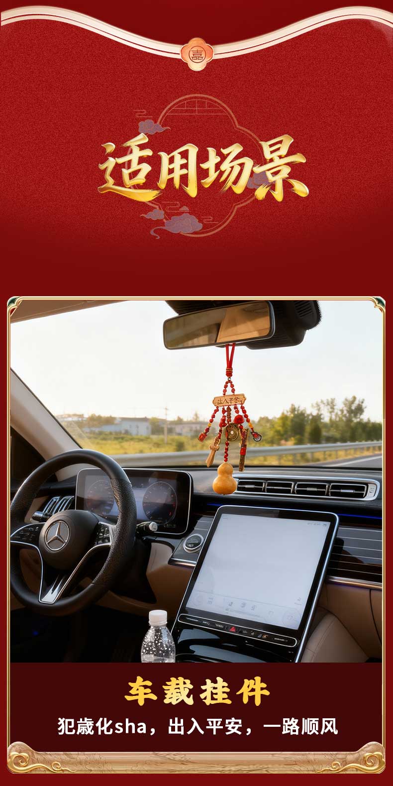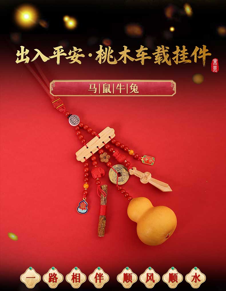 灵机生活馆2026马年出入平安桃木车载挂件马牛鼠兔幸运物挂饰