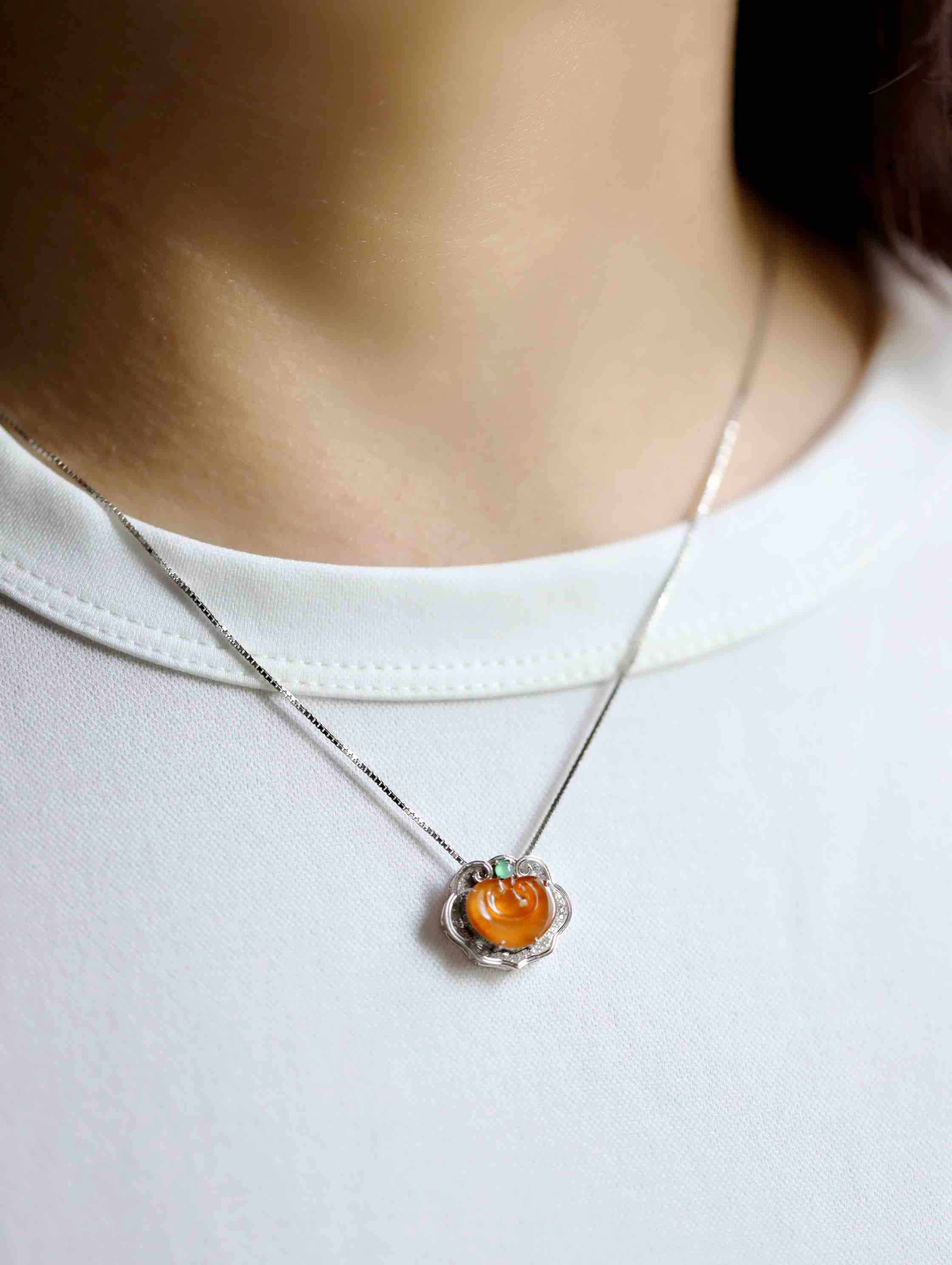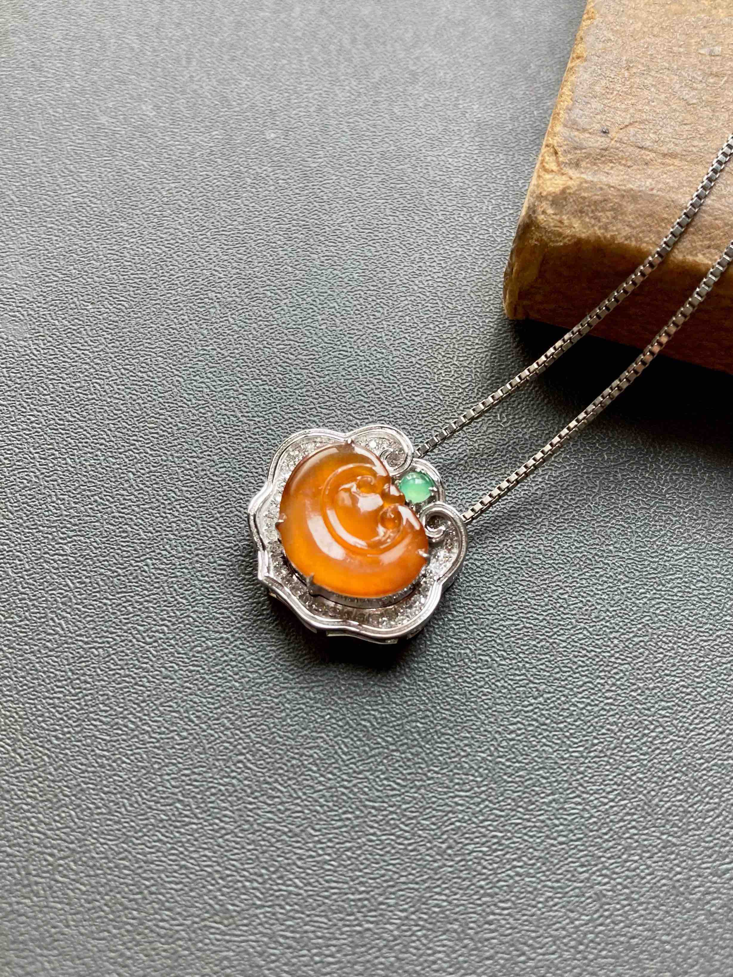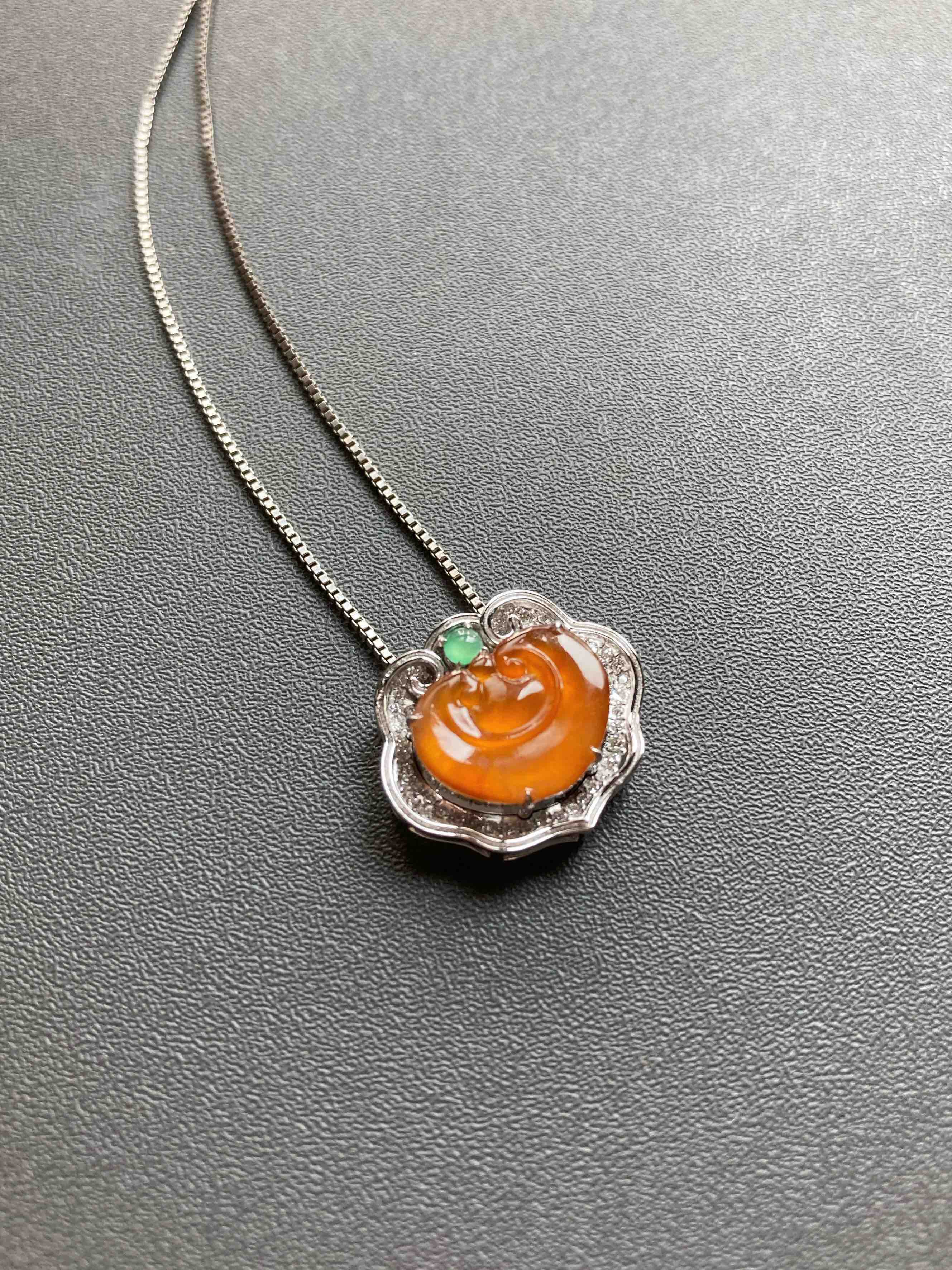 高冰到玻璃种黄翡芬达色如意18k白金钻石镶嵌