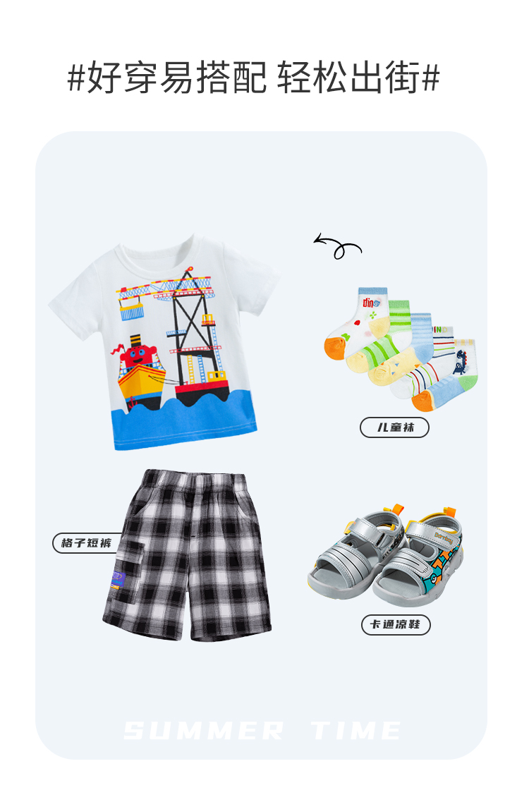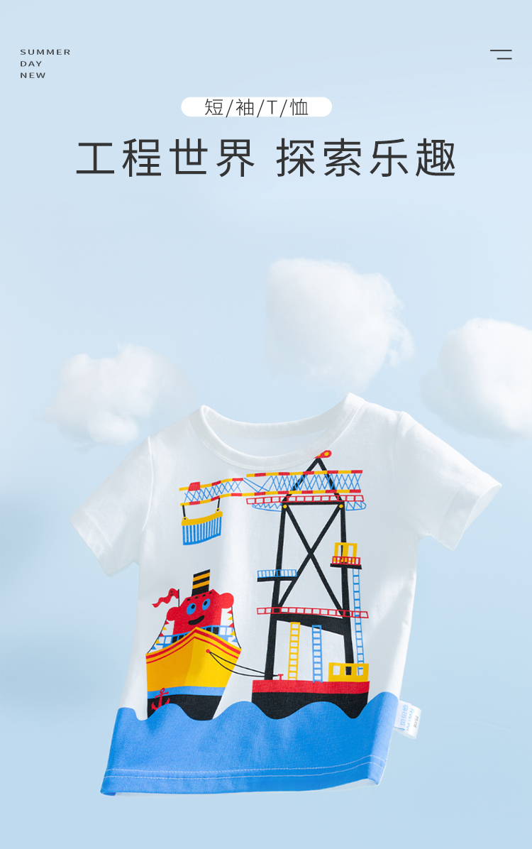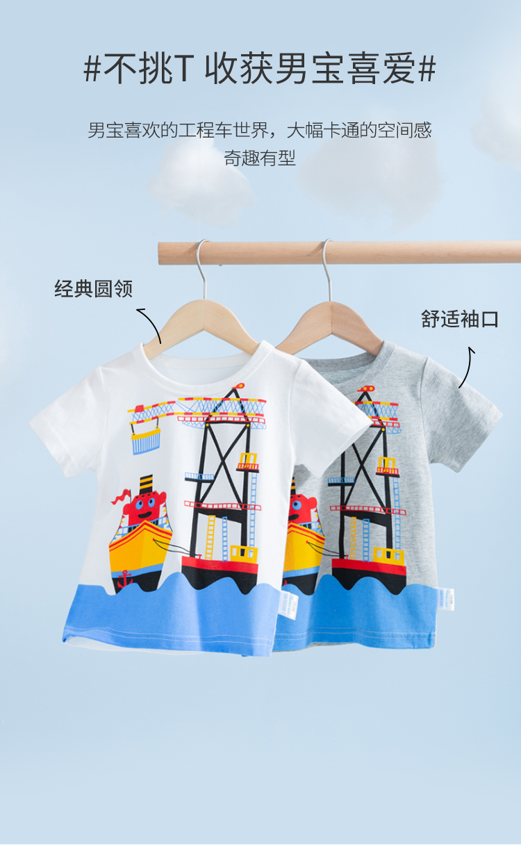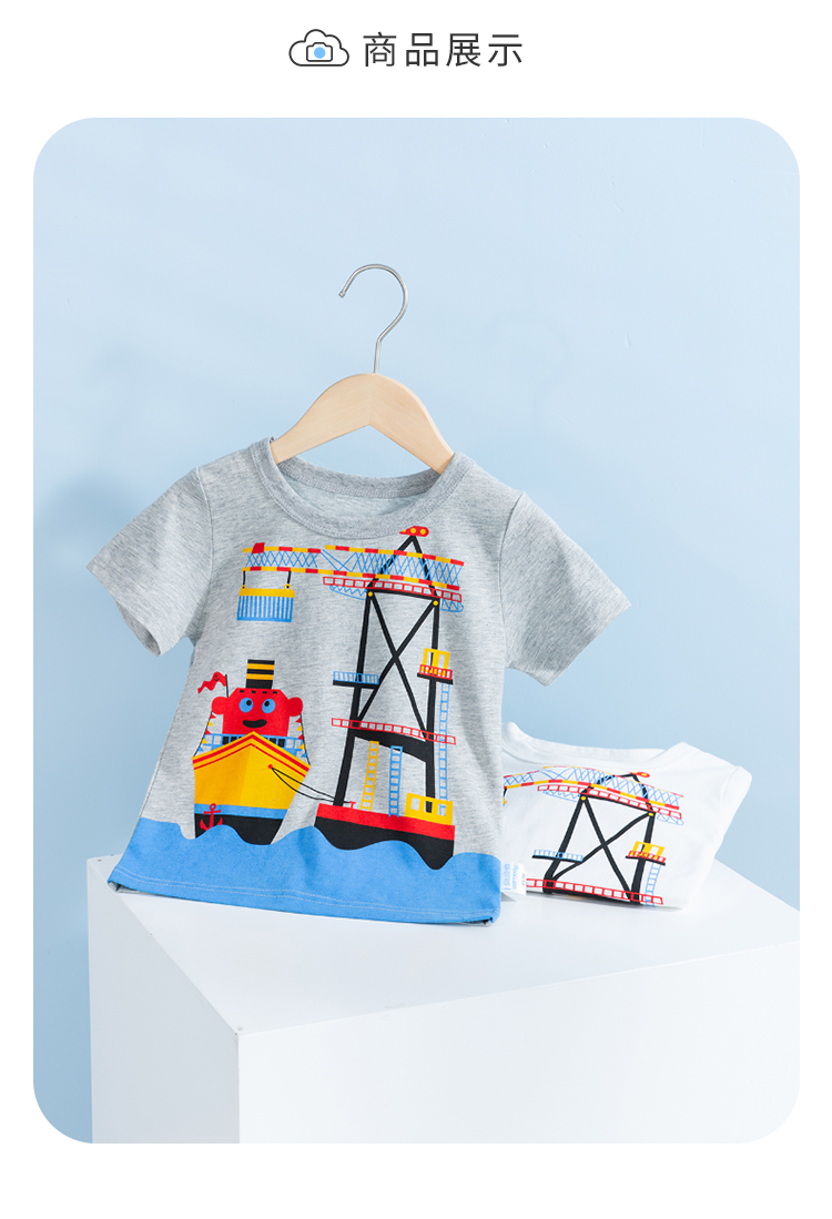 贝贝怡男宝宝卡通短袖T恤儿童圆领纯棉上衣男童休闲打底衫潮