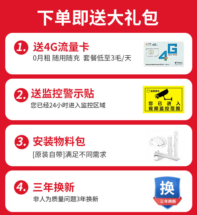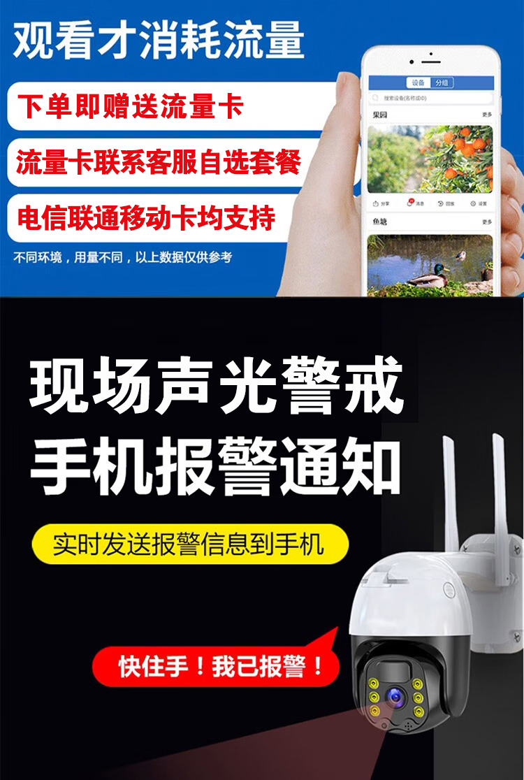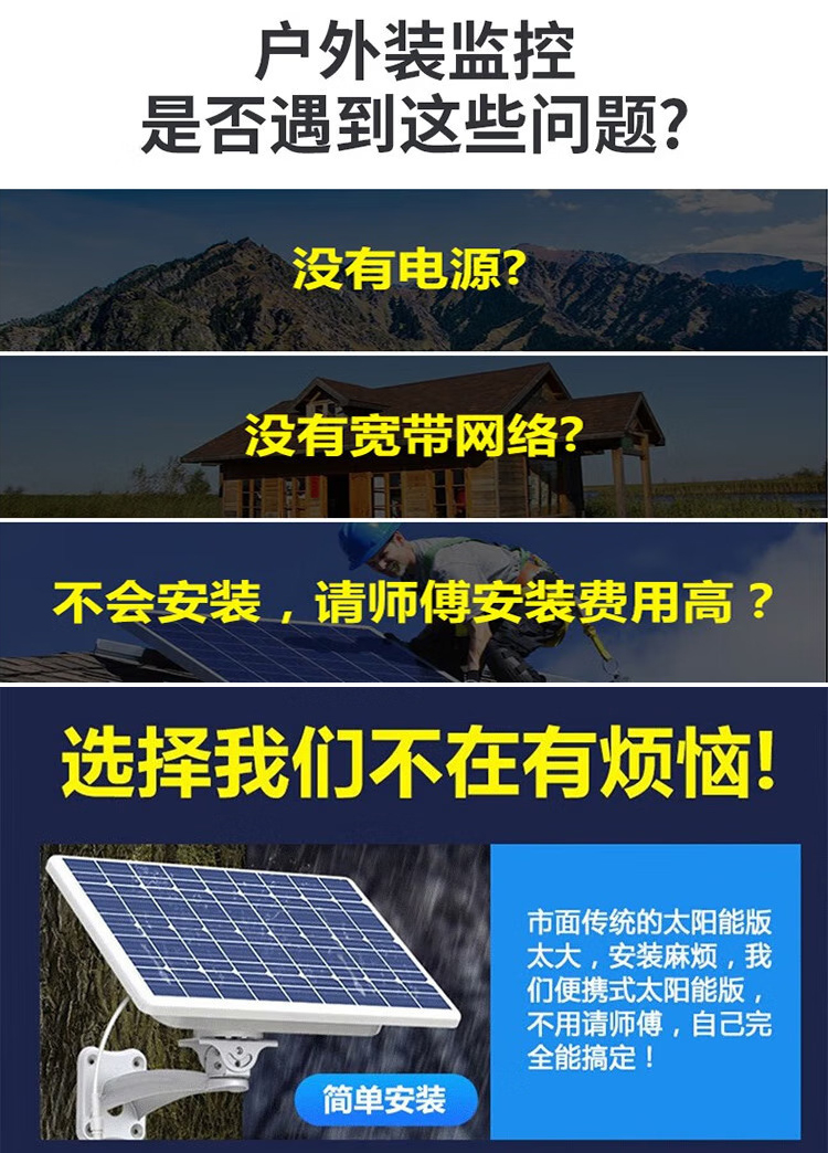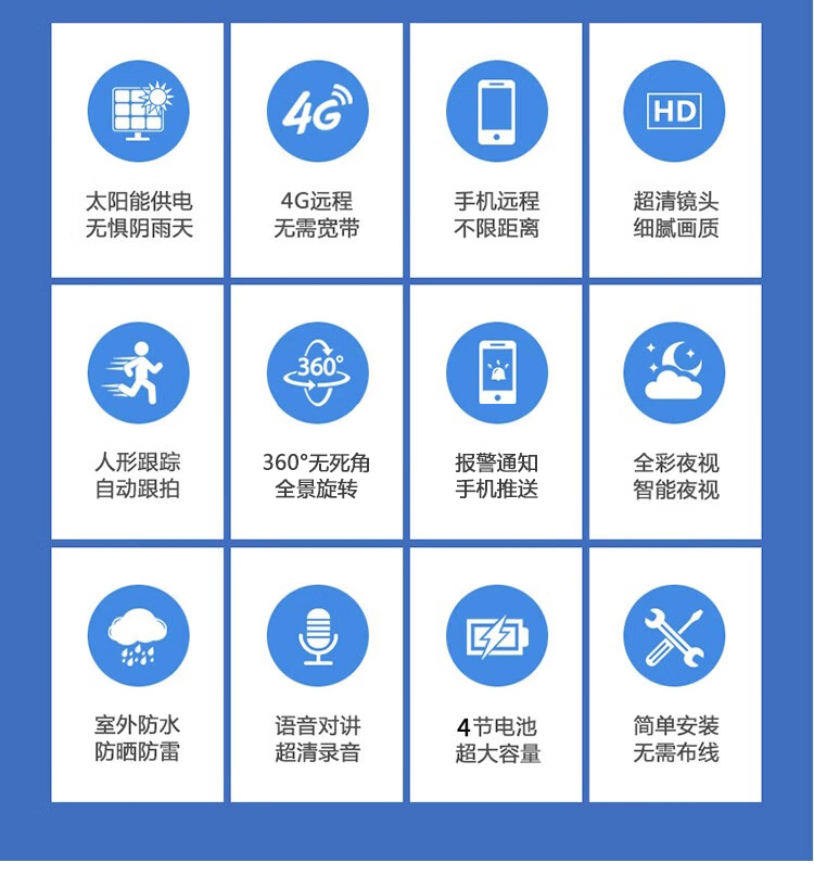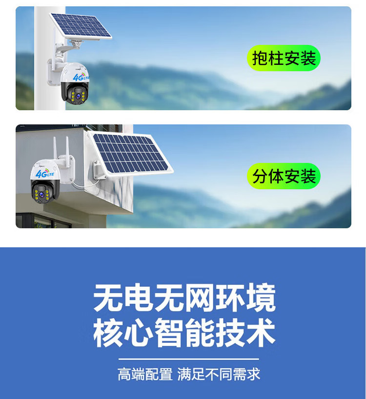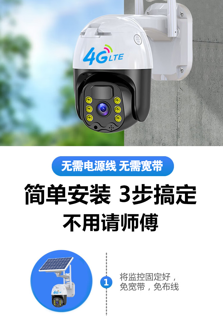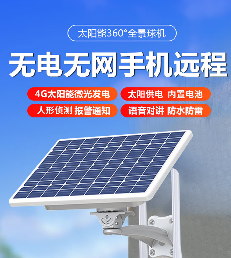 太阳能4g监控无需网络户外无死角手机远程360度全景农村高清夜视防水监控器家用室外免插电摄像头