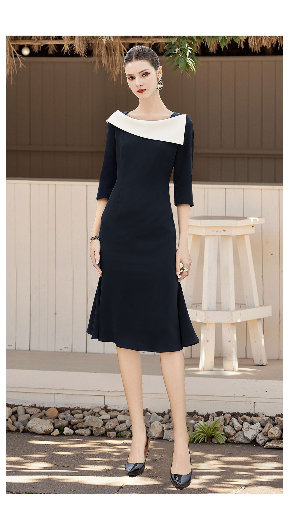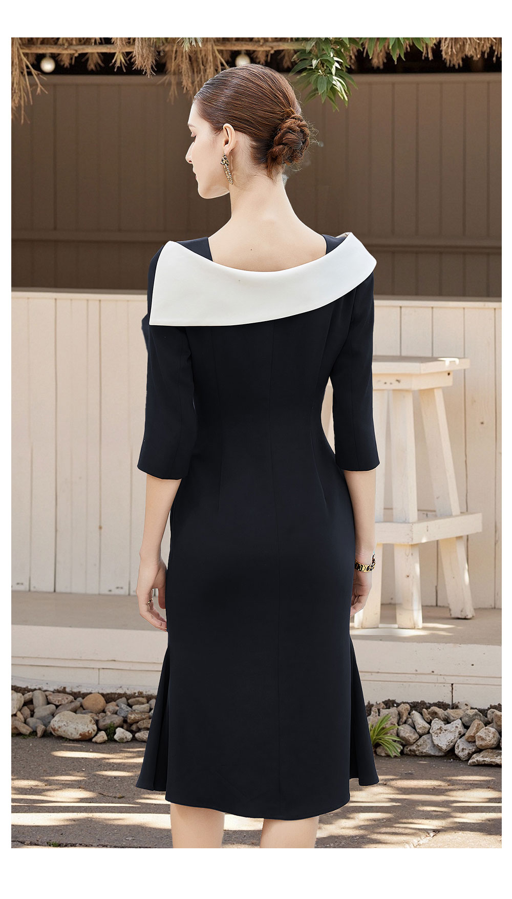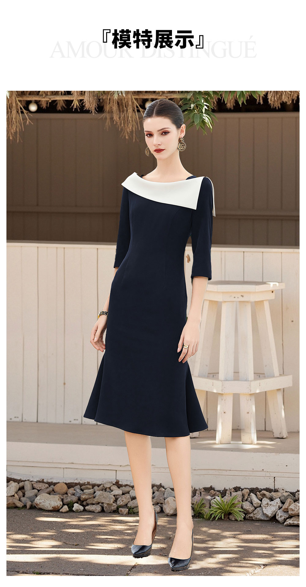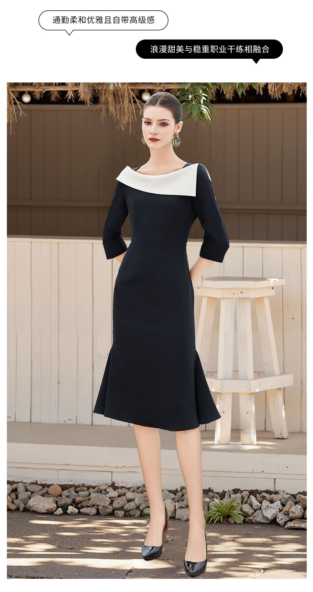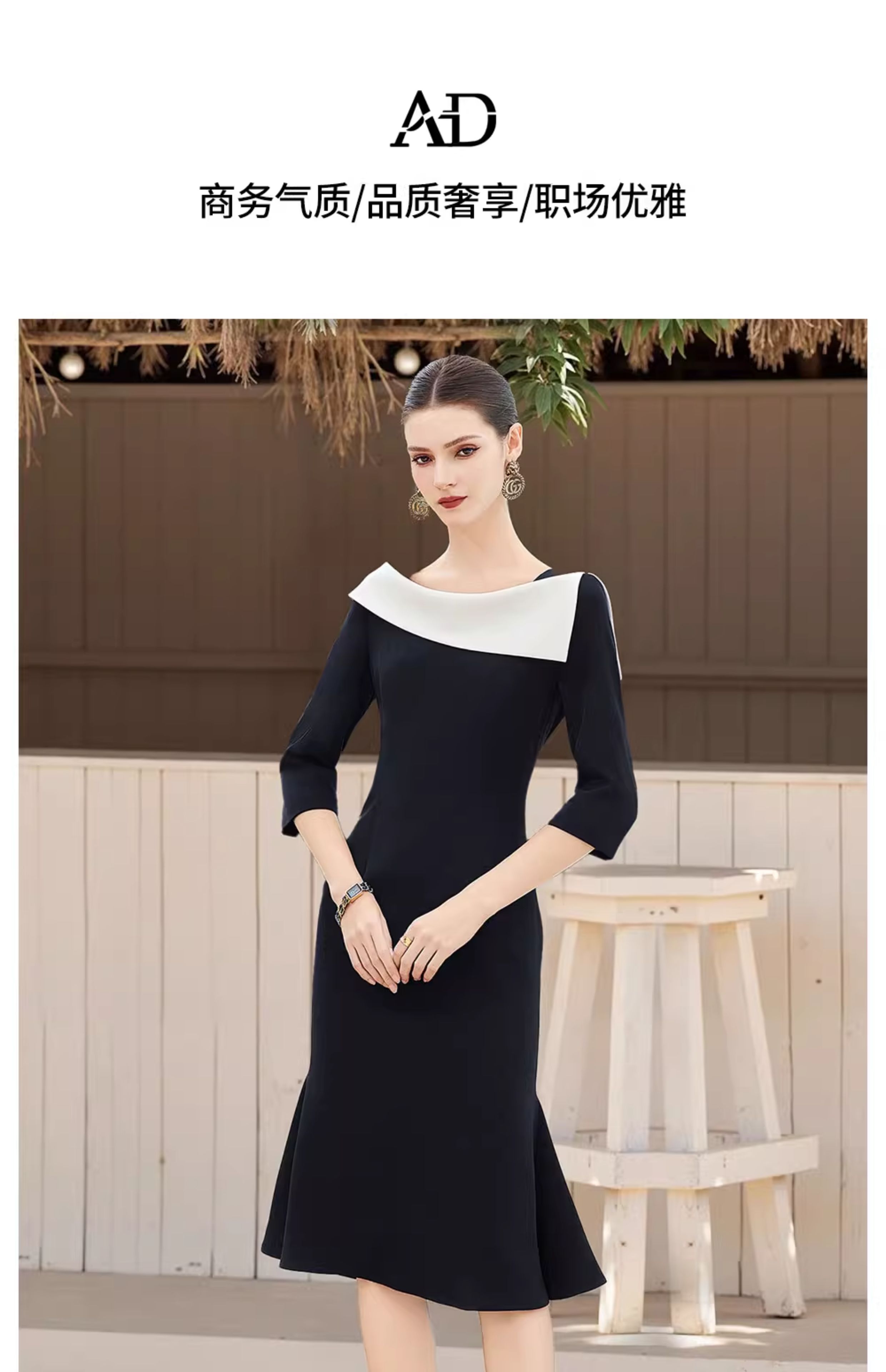 AD法式赫本黑色西装连衣裙女设计感名媛职业裙宴会主持小礼服鱼尾