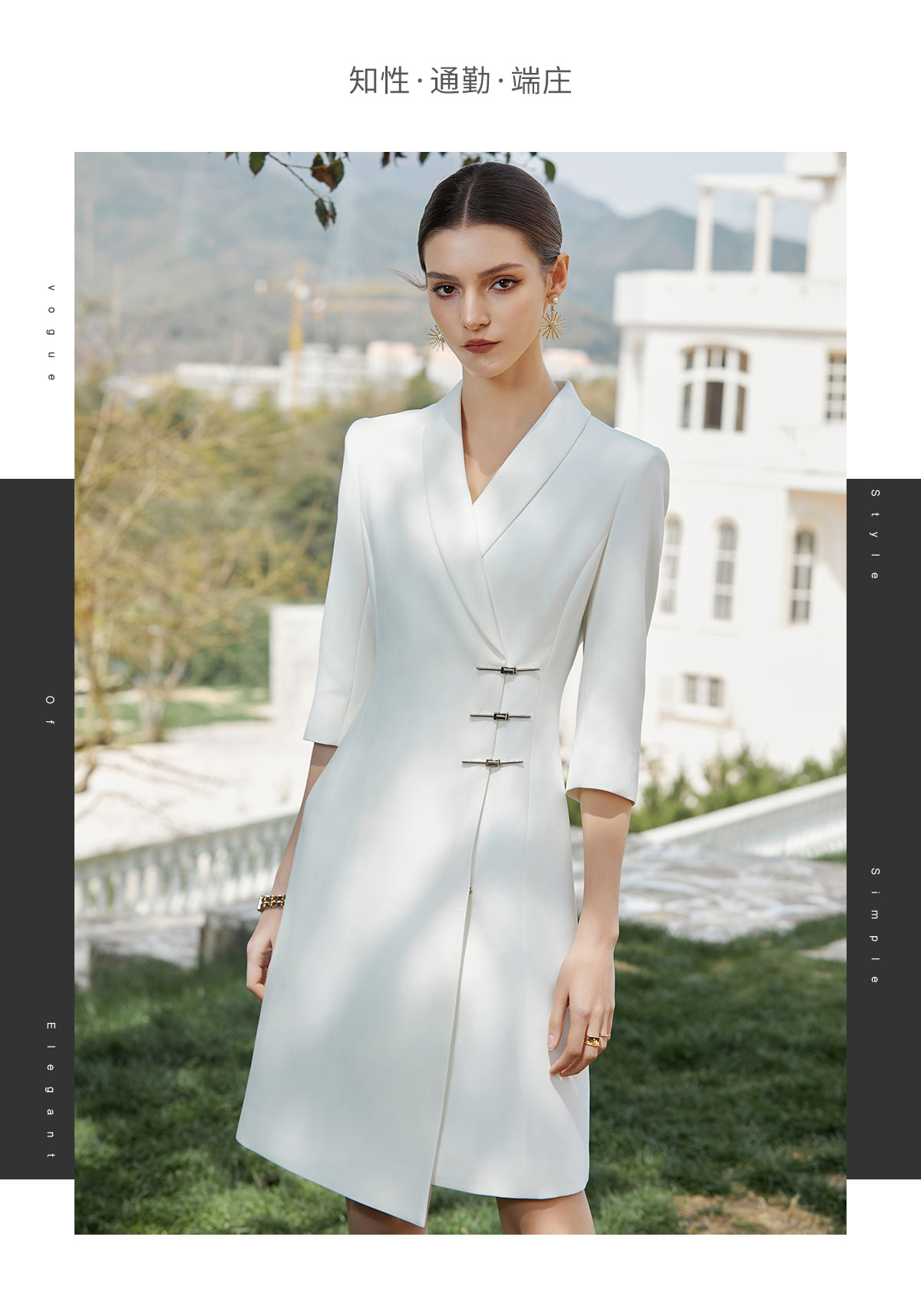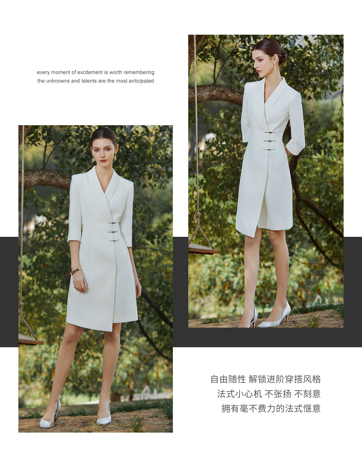 AD正式场合西装连衣裙高端不规则a字裙新中式国风盘扣白色西装裙