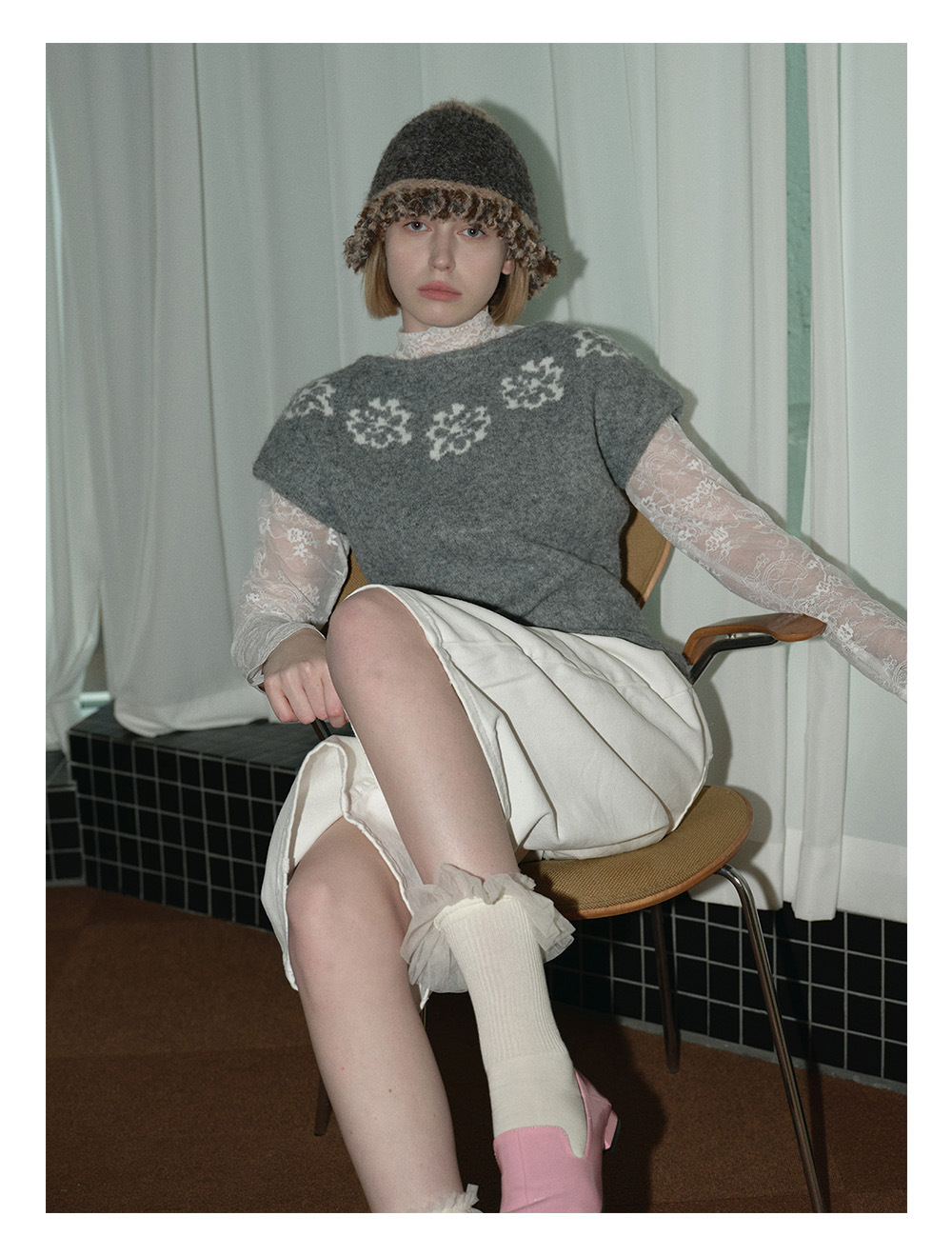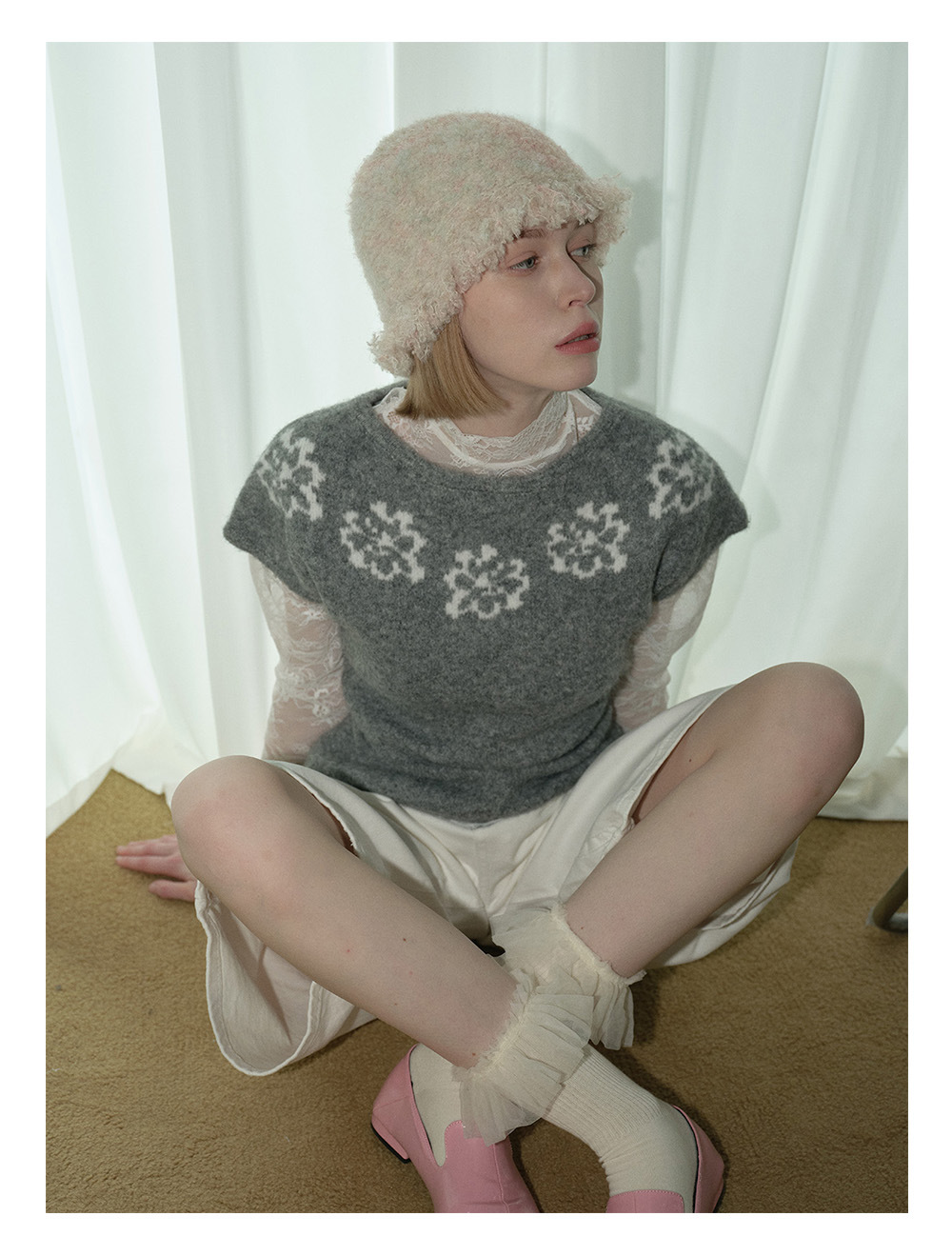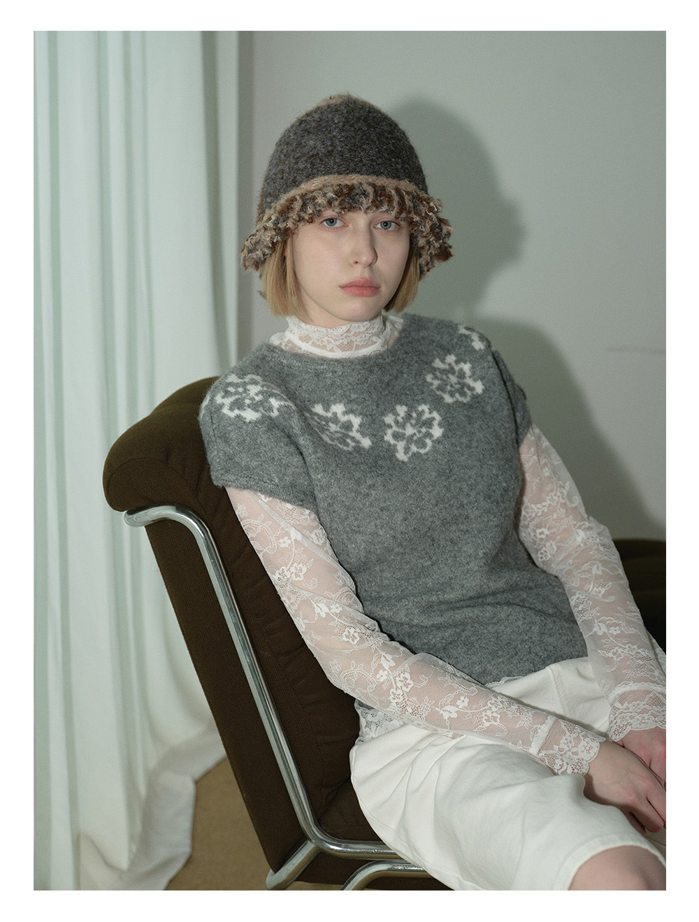 2025羊毛混纺流苏花边拼色毛线帽!女秋冬季搭配复古针织盆帽!