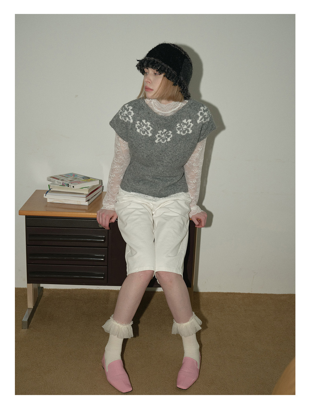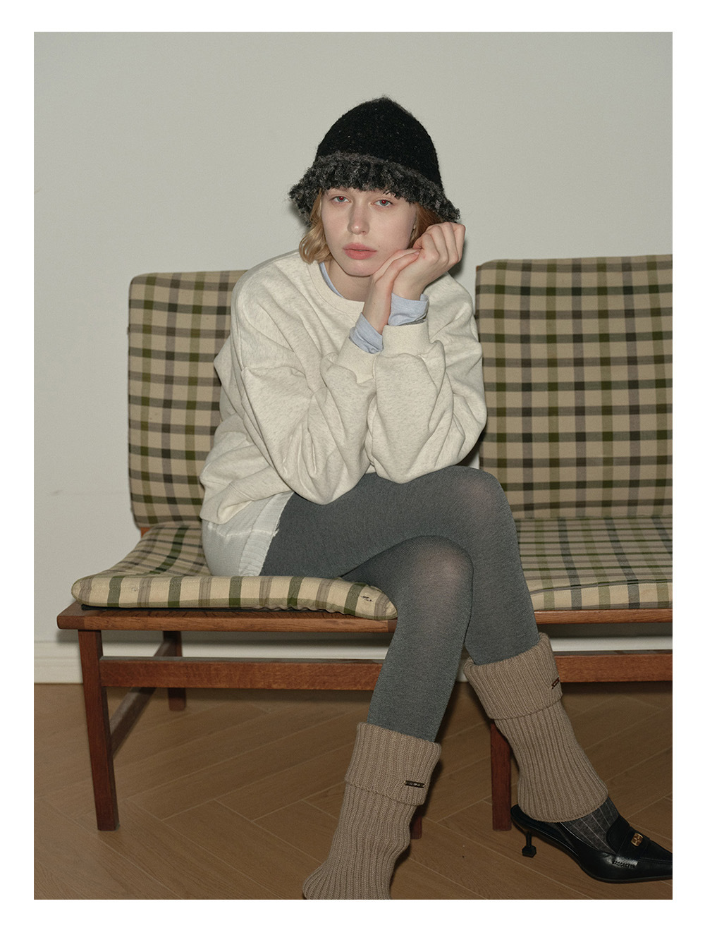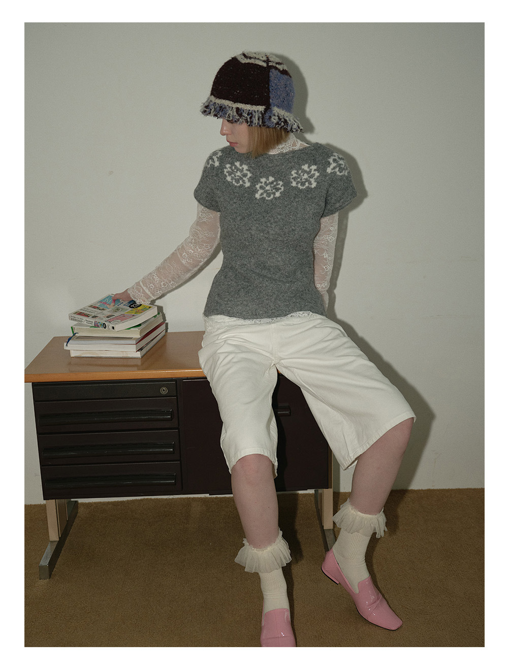 2025羊毛混纺流苏花边拼色毛线帽!女秋冬季搭配复古针织盆帽!