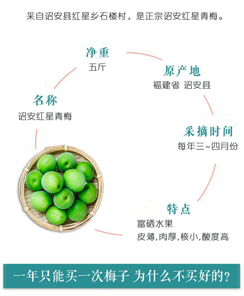 【福建诏安红星青梅5斤装】中大果/单果直径2.6cm以上/国家地理标志产品富硒青梅 梅子/EMS空运