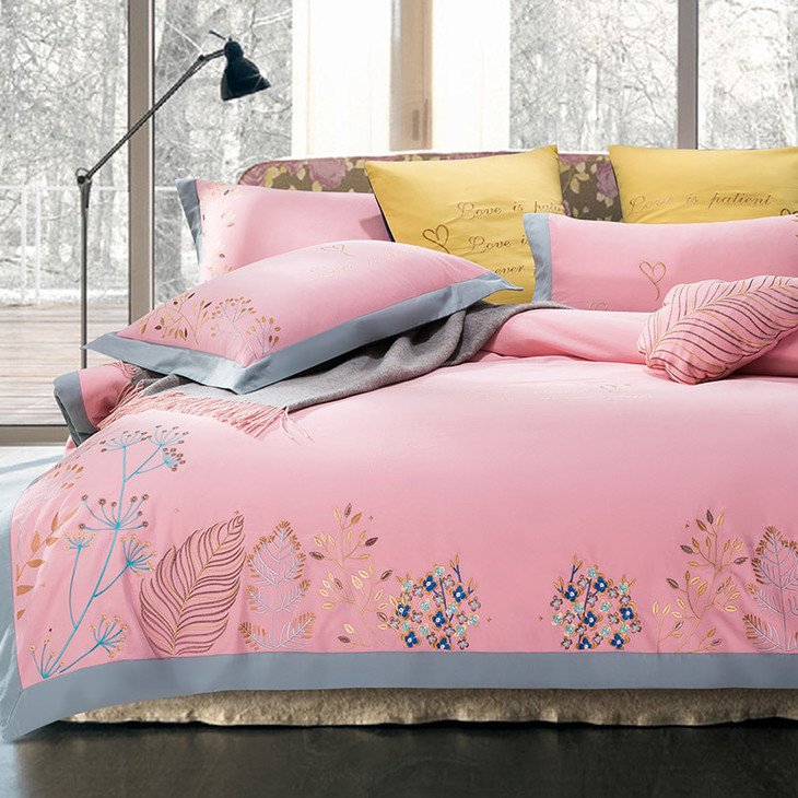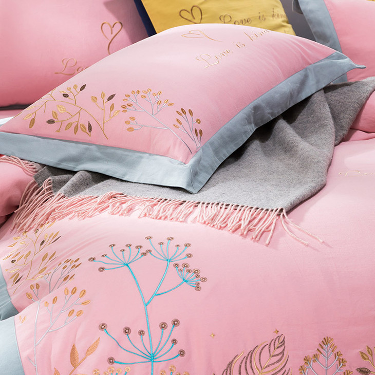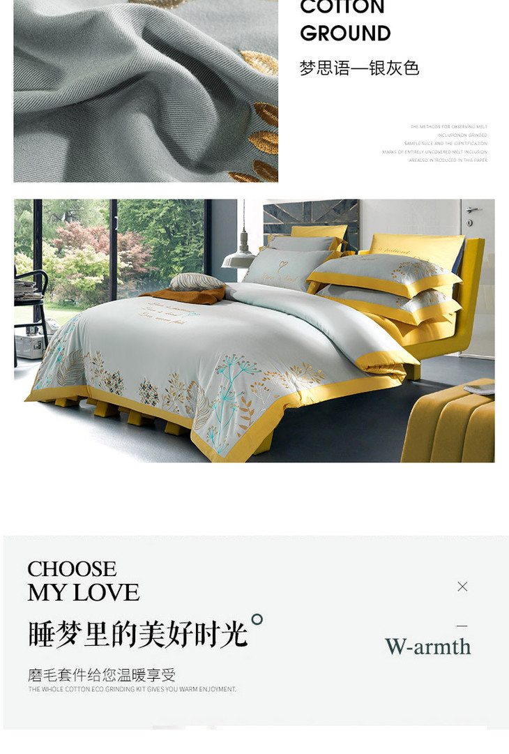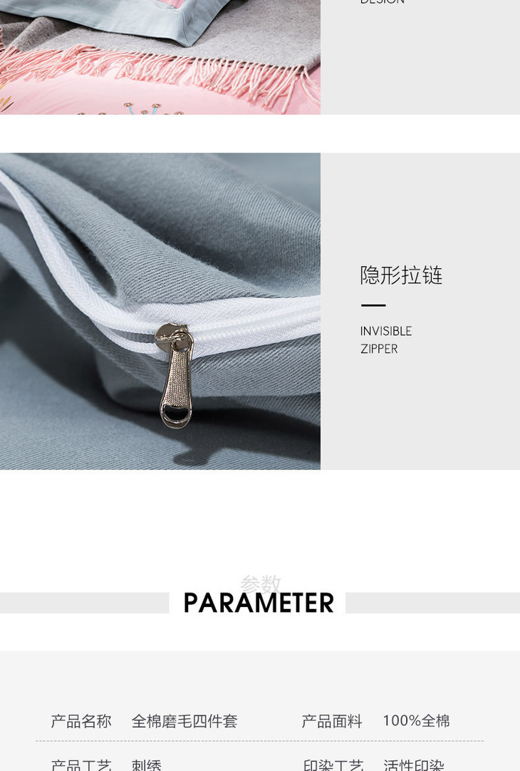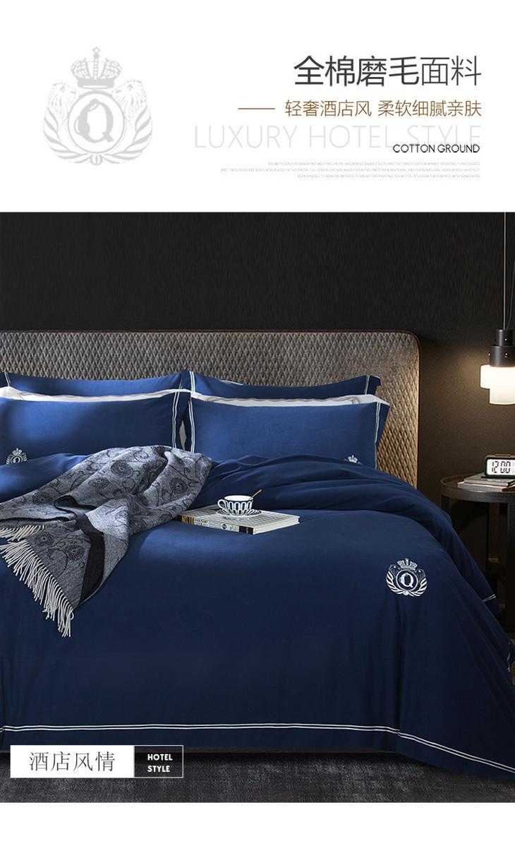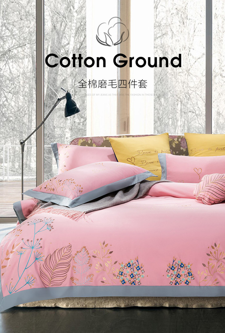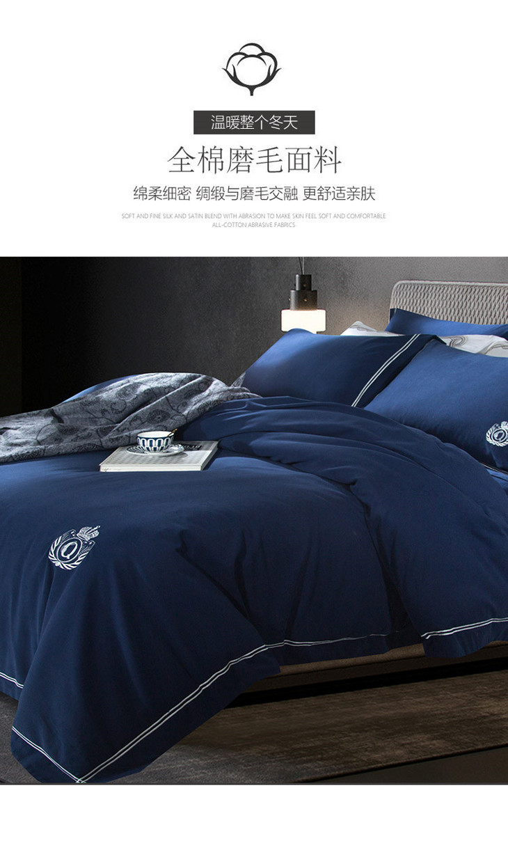 【四件套】*秋冬轻奢80支全棉磨毛四件套简约纯色刺绣加厚保暖磨毛床单床笠款