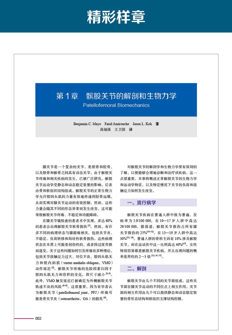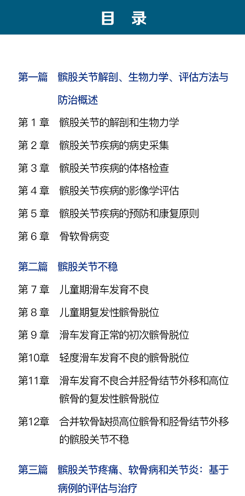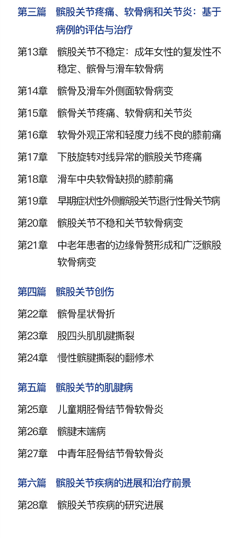本书引进自 Springer 出版社,是一部全面介绍髌股关节相关疾病治疗方法的实用著作。全书共六篇 28 章,从不同髌股关节疾病的解剖学和运动学基础入手,系统描述了髌股关节不稳、软骨疾病和关节炎、创伤和肌腱病变的特征、诊断及治疗指导原则。书中基于病例的治疗方法进行了探讨,详述了不同专家对保守治疗或外科手术术式的建议,为临床医师提供了疾病评估的关键要点,是著者在大量实践和创新基础上的理论总结,对国内从事骨科临床工作的医师很有帮助。全书内容实用、阐释简明、图文并茂,既可作为住院医师和初级骨科医师的指导书,又可作为中高级骨科医师了解新技术的参考书。