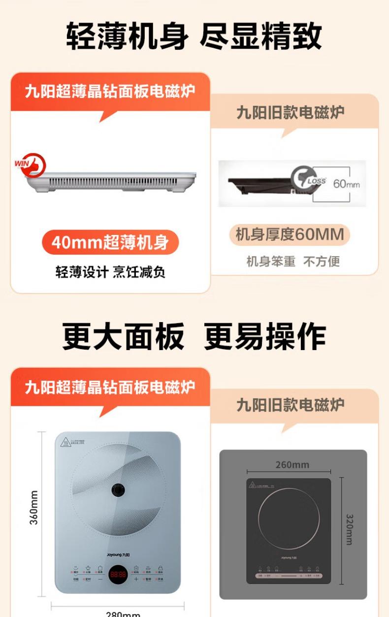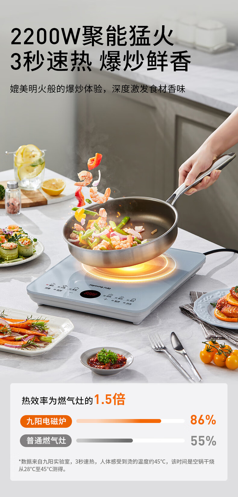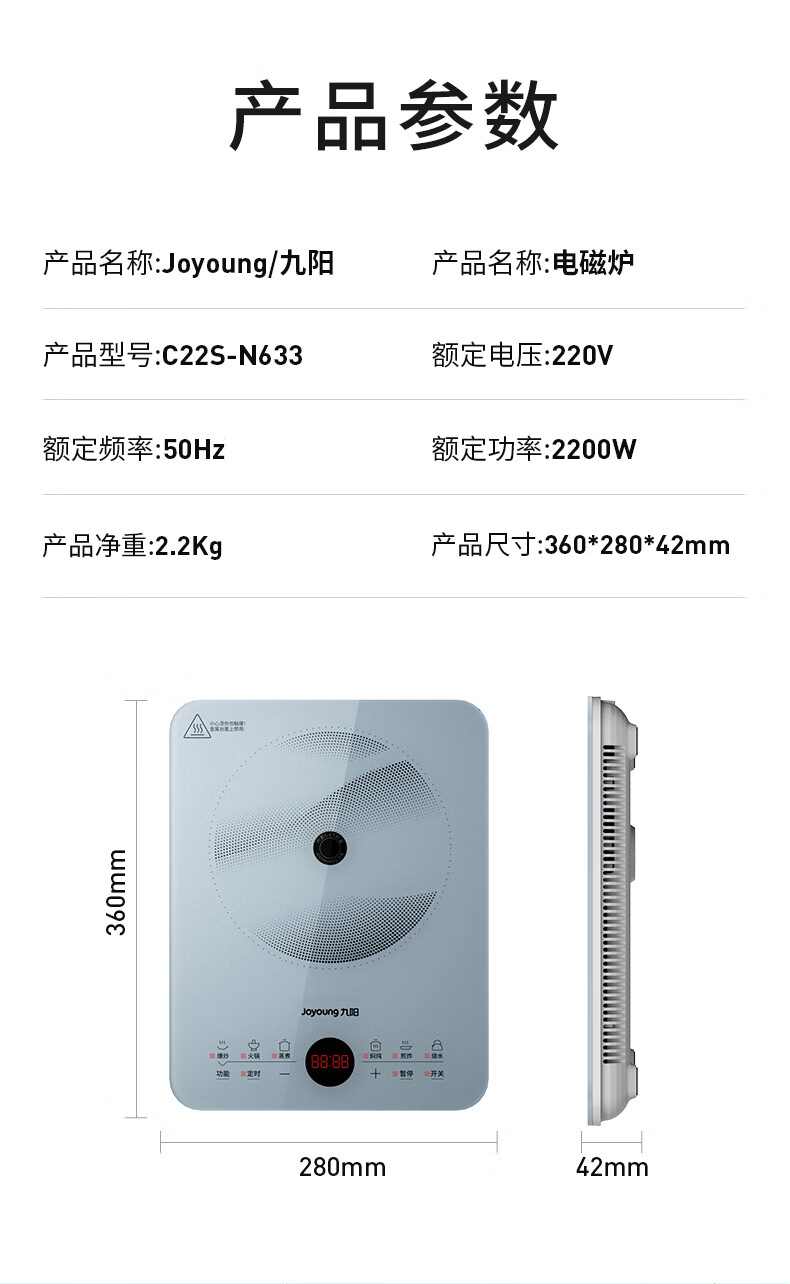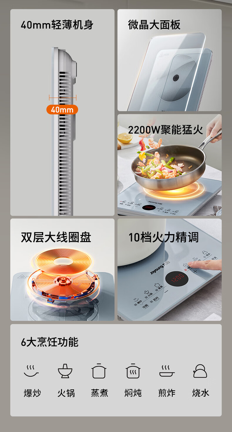 九阳电磁炉2200W多档调节家用轻薄触控火锅炉电磁灶爆炒匀火加热