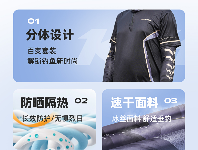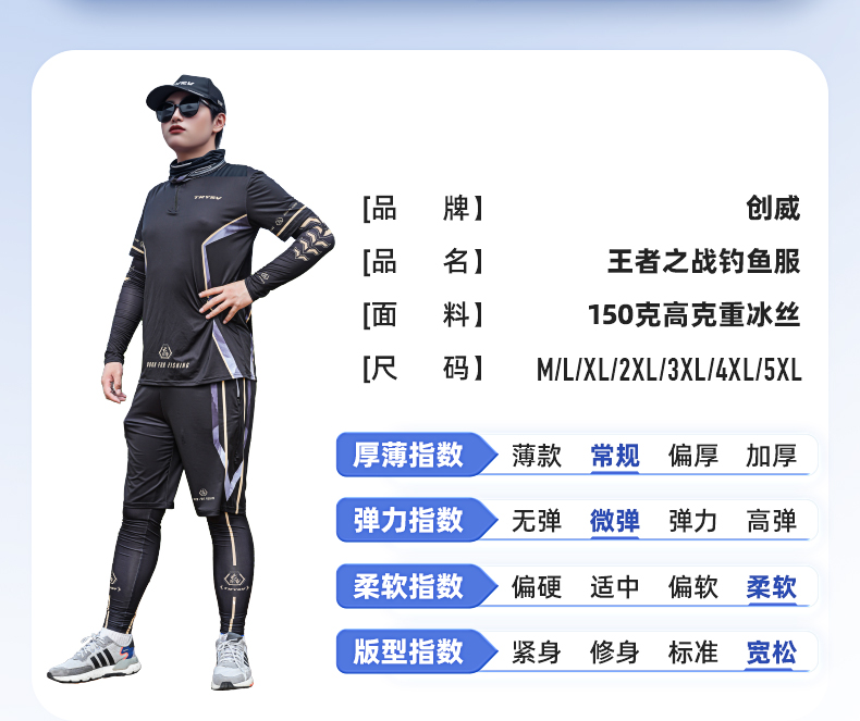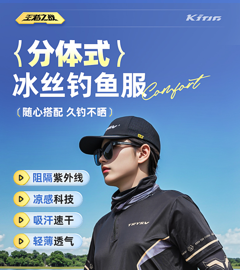 创威王者之战夏季冰丝防紫外线透气户外分体钓鱼服轻薄防晒服短袖