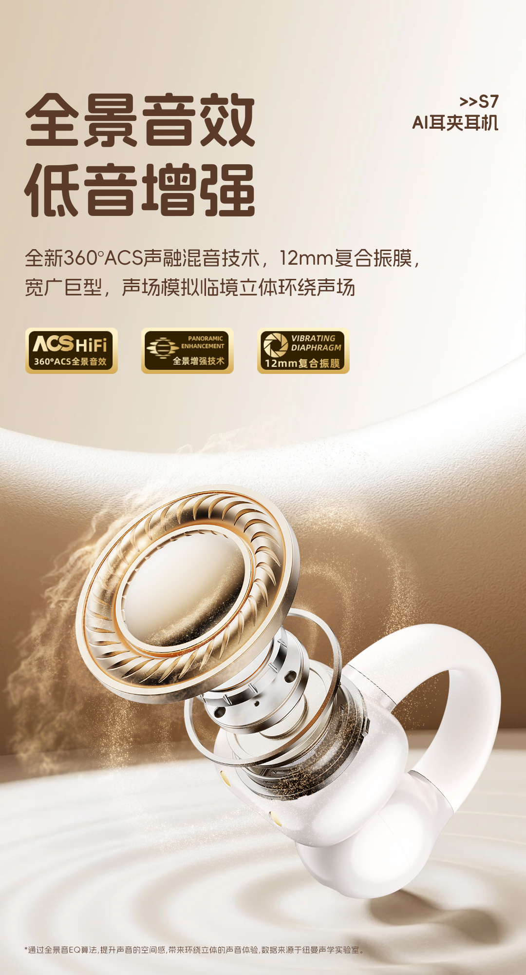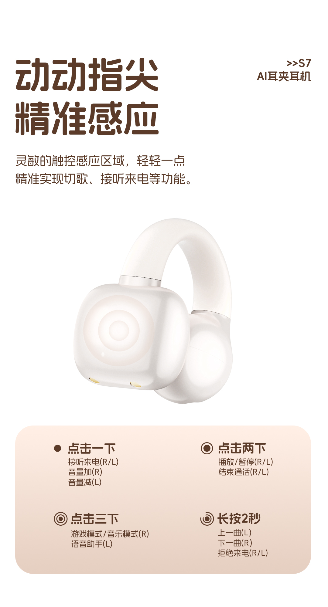 Newmine纽曼S7 AI 耳夹耳机【爆单!玫瑰金、黑色预售18号发】