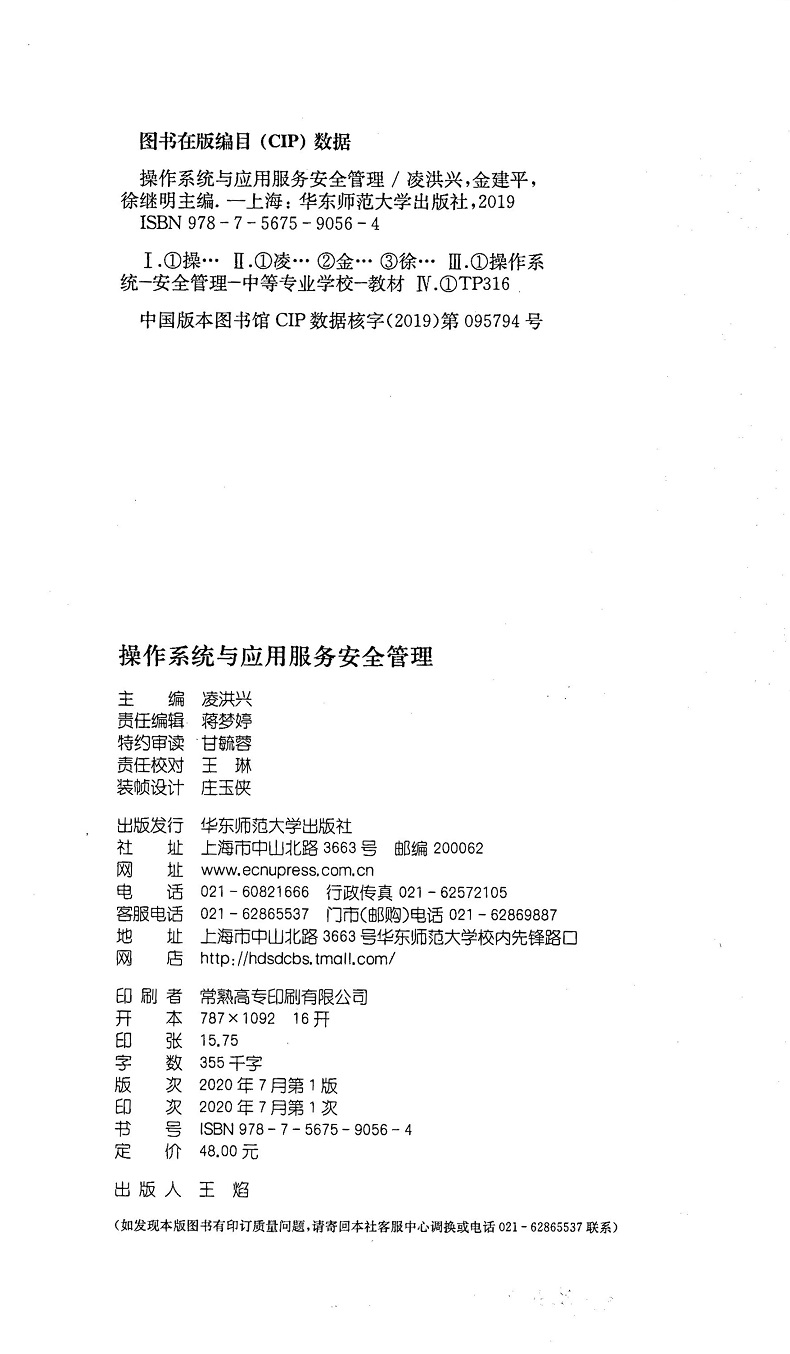 操作系统与应用服务安全管理 凌洪兴 安全管理 中等专业学校教材 网络技术 信息安全管理 中职中专 正版 华东师范大学出版社