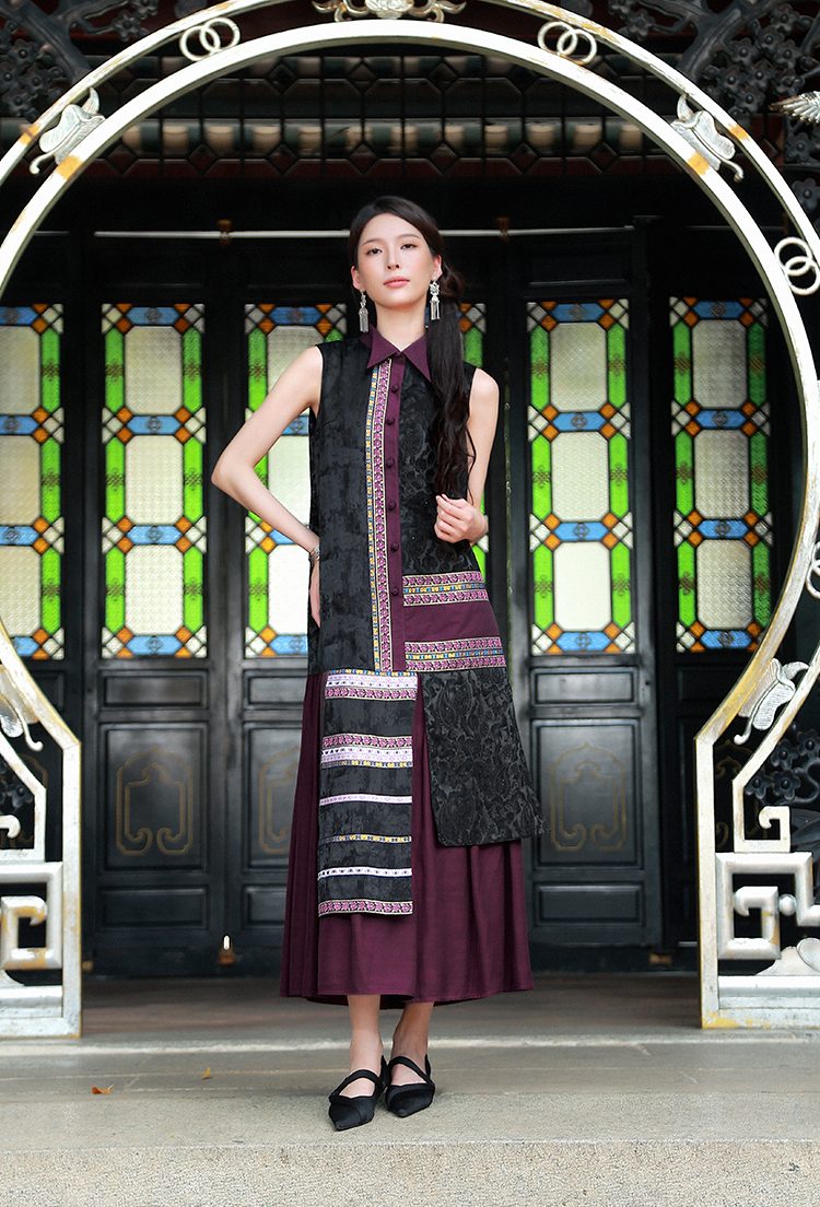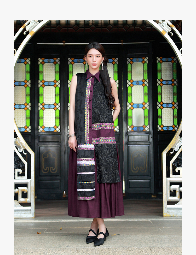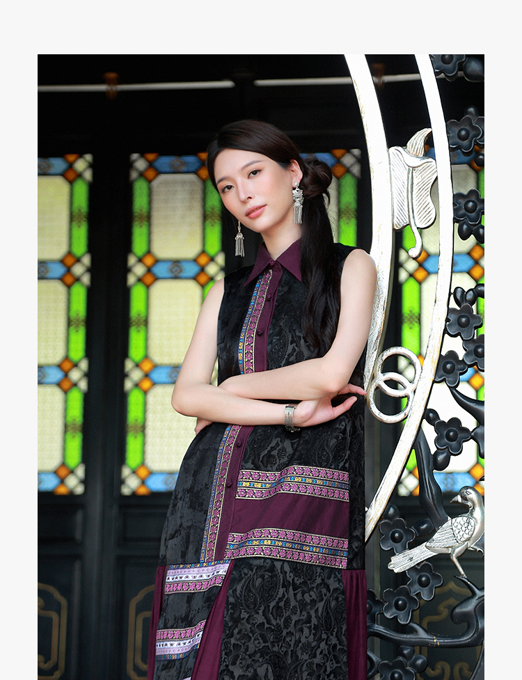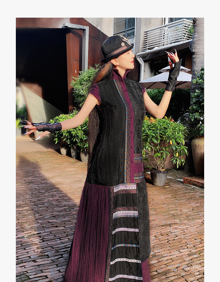 【杨丽萍旗袍改良款】暗香盈秀拼接连衣裙 | 紫色优雅端庄 |现货加急发