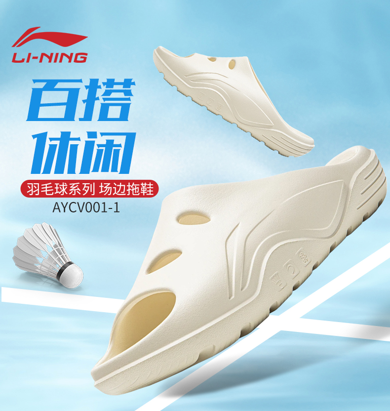 李宁羽毛球场边拖鞋男女同款春夏防滑运动凉拖AYCV001