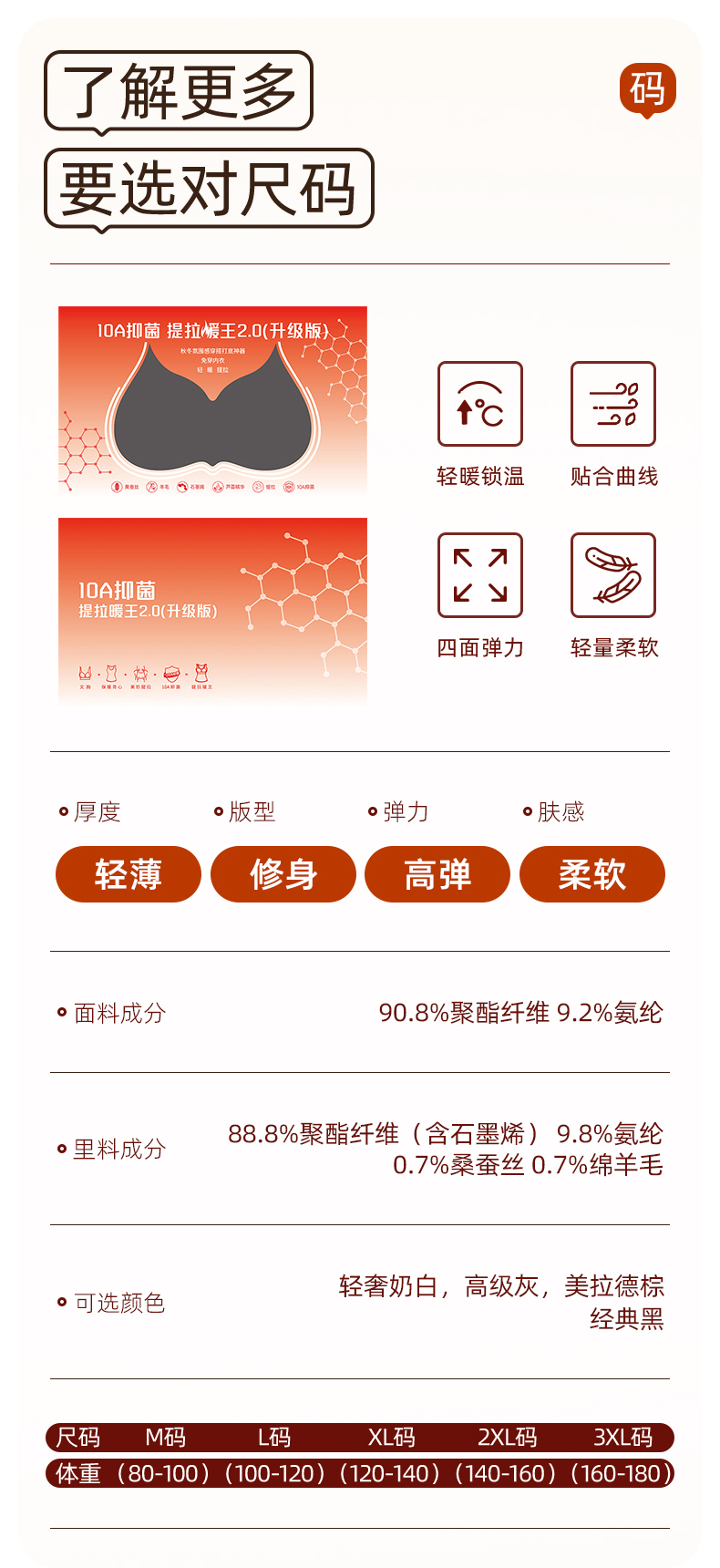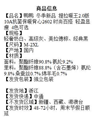鸭鸭 冬季新品 提拉暖王2.0 10A抗菌保暖背心