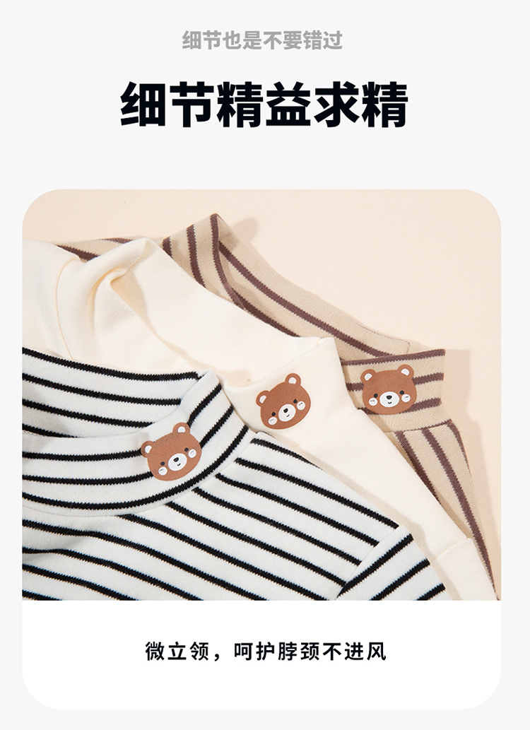 贝贝怡童装儿童长袖t恤秋季新款条纹女童打底衫宝宝外穿中领上衣ZB3DS031