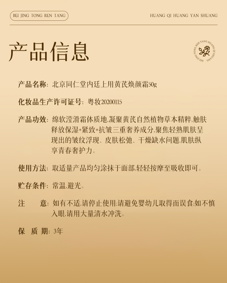 北京同仁堂内廷上用黄芪焕颜霜50g/盒
