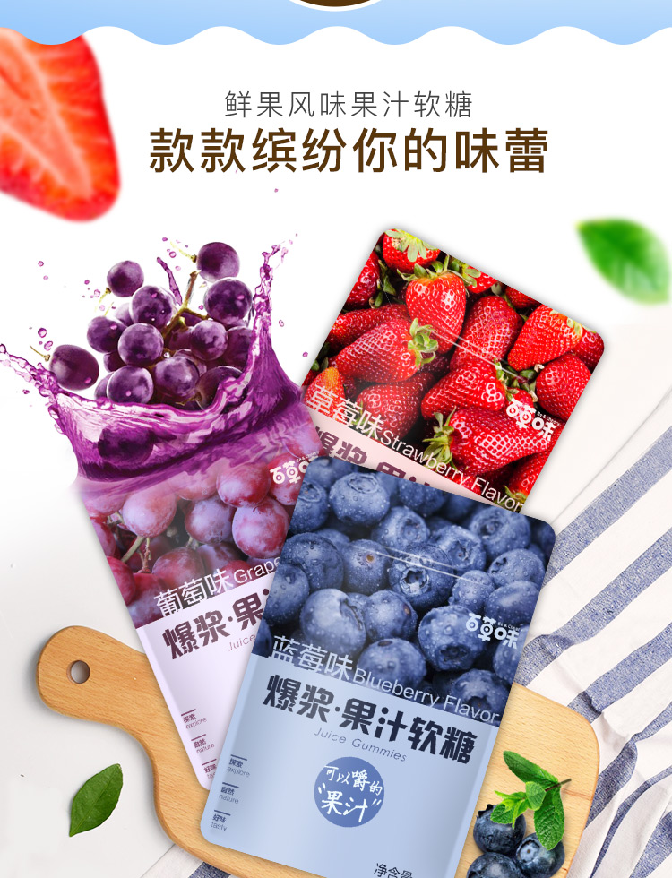 百草味爆浆果汁软糖(蓝莓味)45g