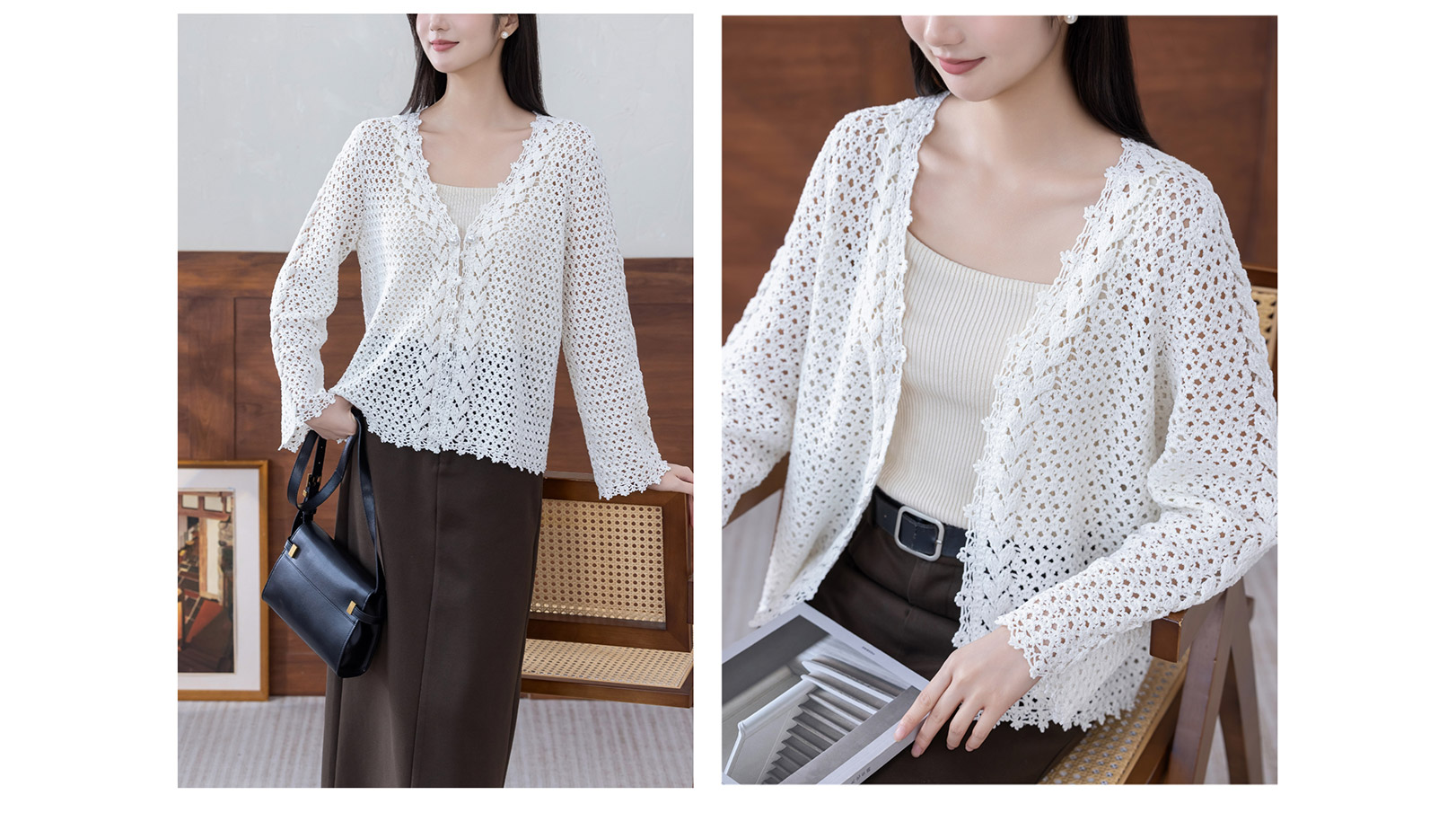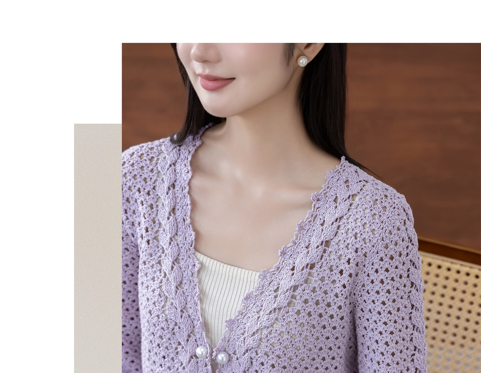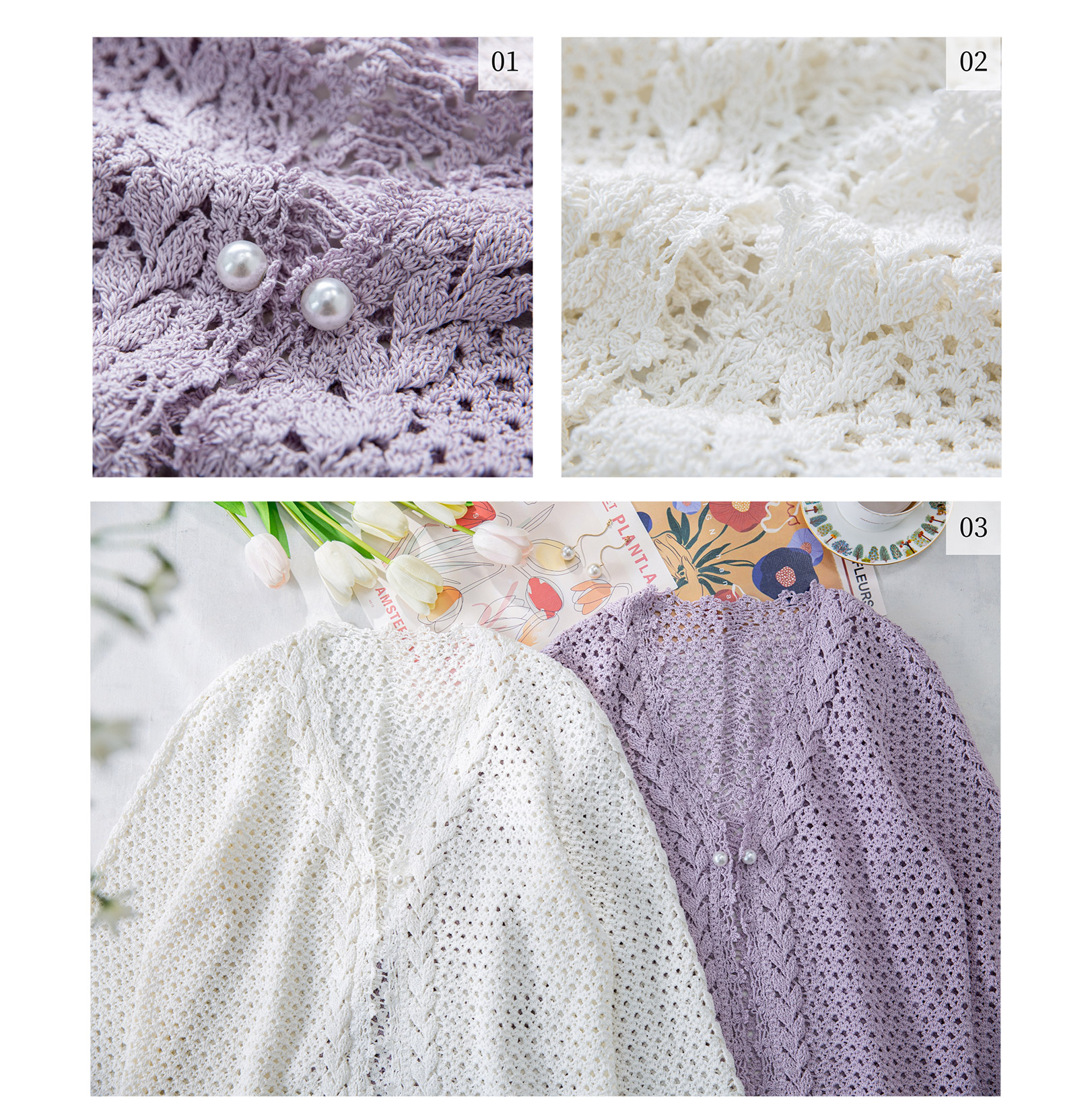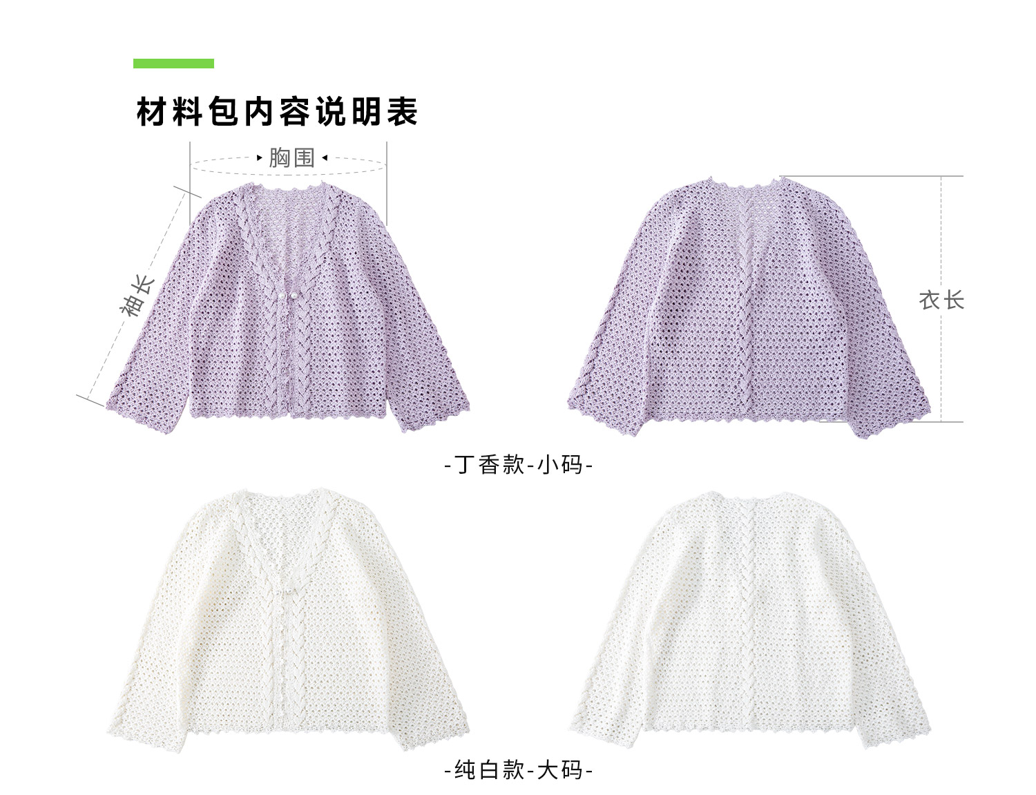 苏苏姐家双叶V领开衫手工DIY钩针纯棉蕾丝线毛线团自制材料包