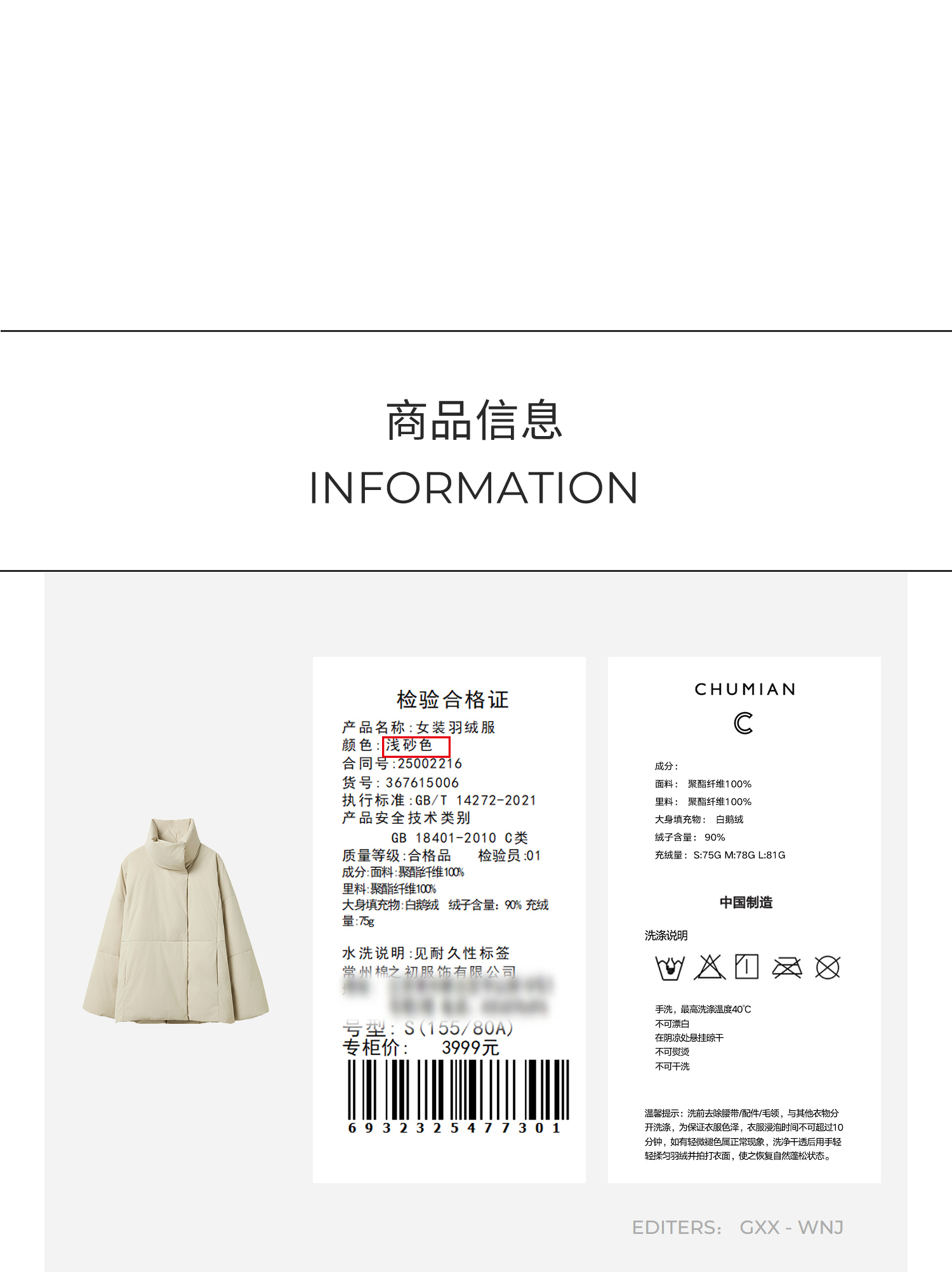 棉仓367615006-【90白鹅绒】大翻领轻薄短款羽绒服女25冬立领宽松保暖外套