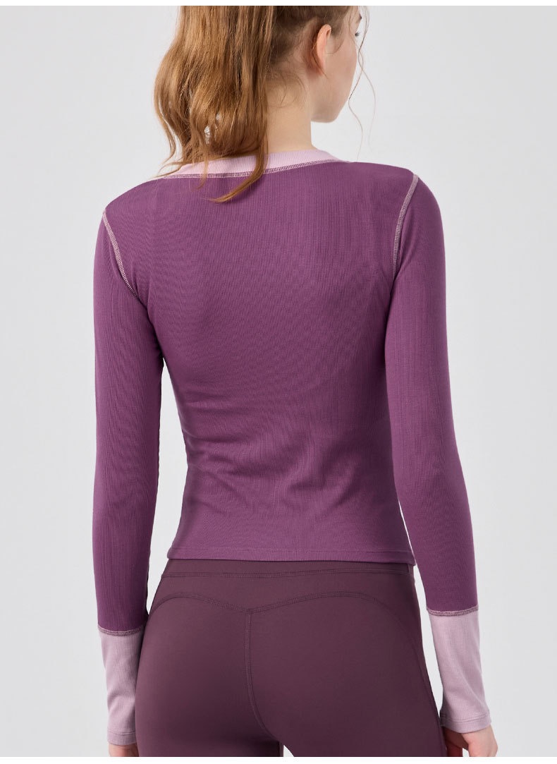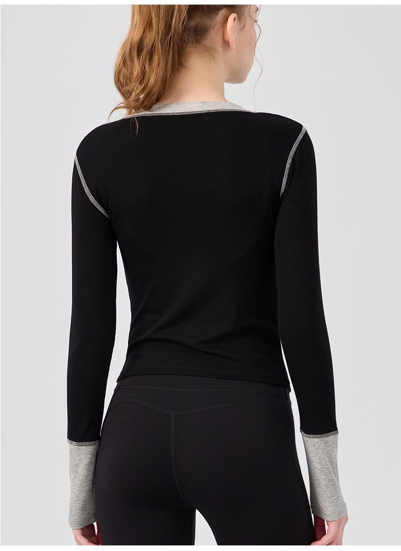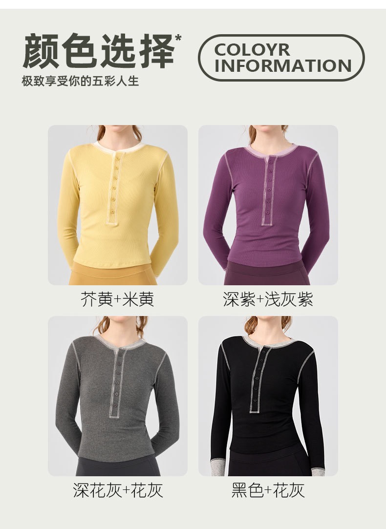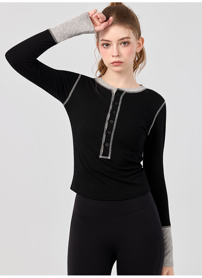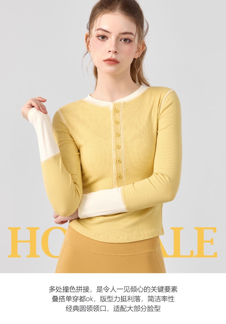 初秋新款撞色拼接瑜伽上衣女 半开门襟气质圆领长袖BMMZ-341