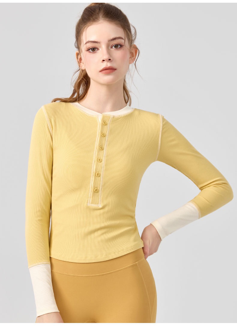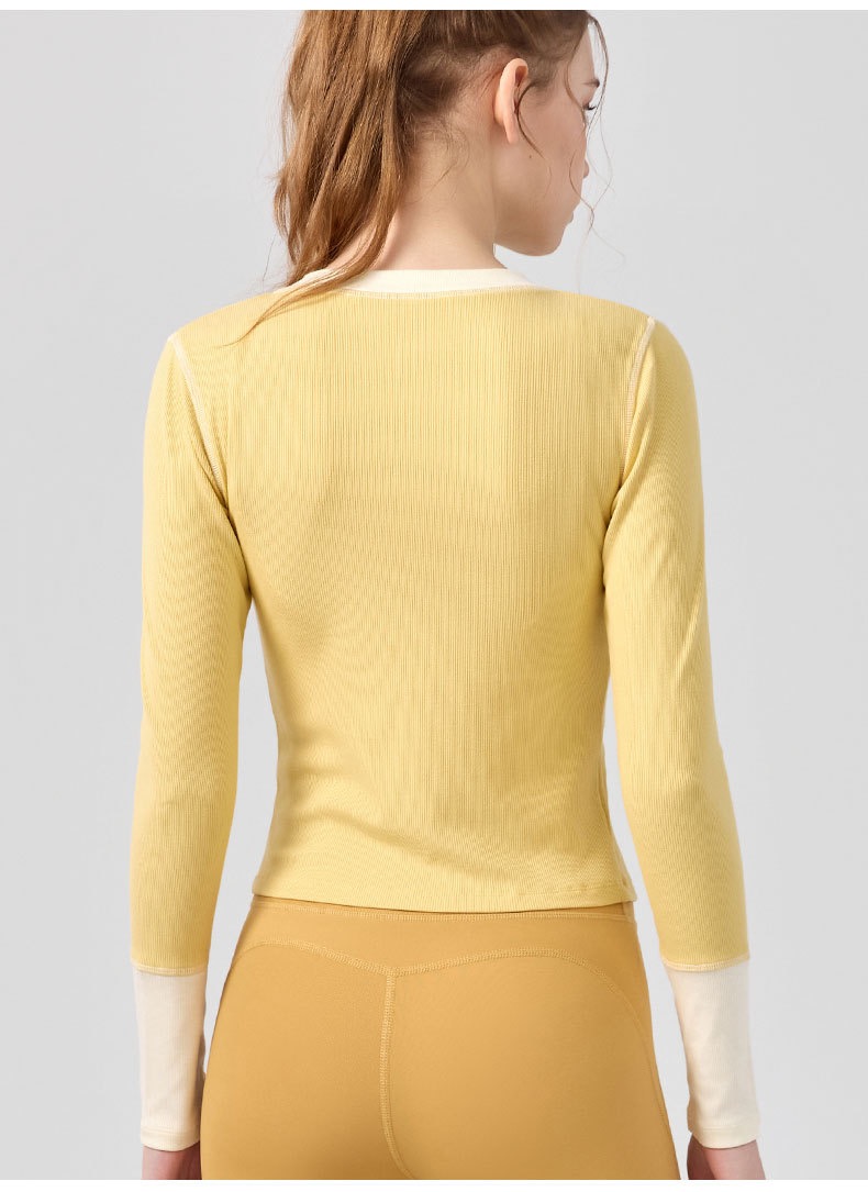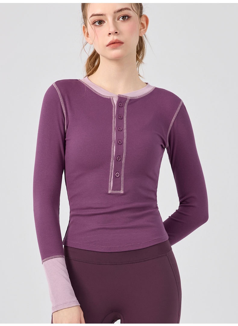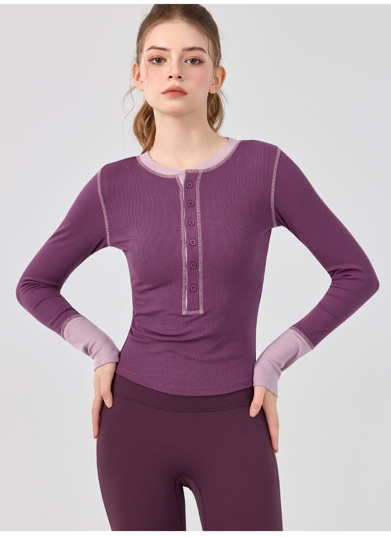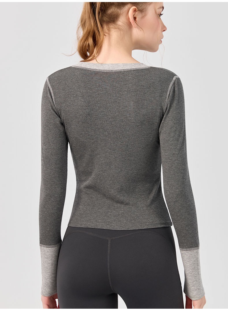 初秋新款撞色拼接瑜伽上衣女 半开门襟气质圆领长袖BMMZ-341