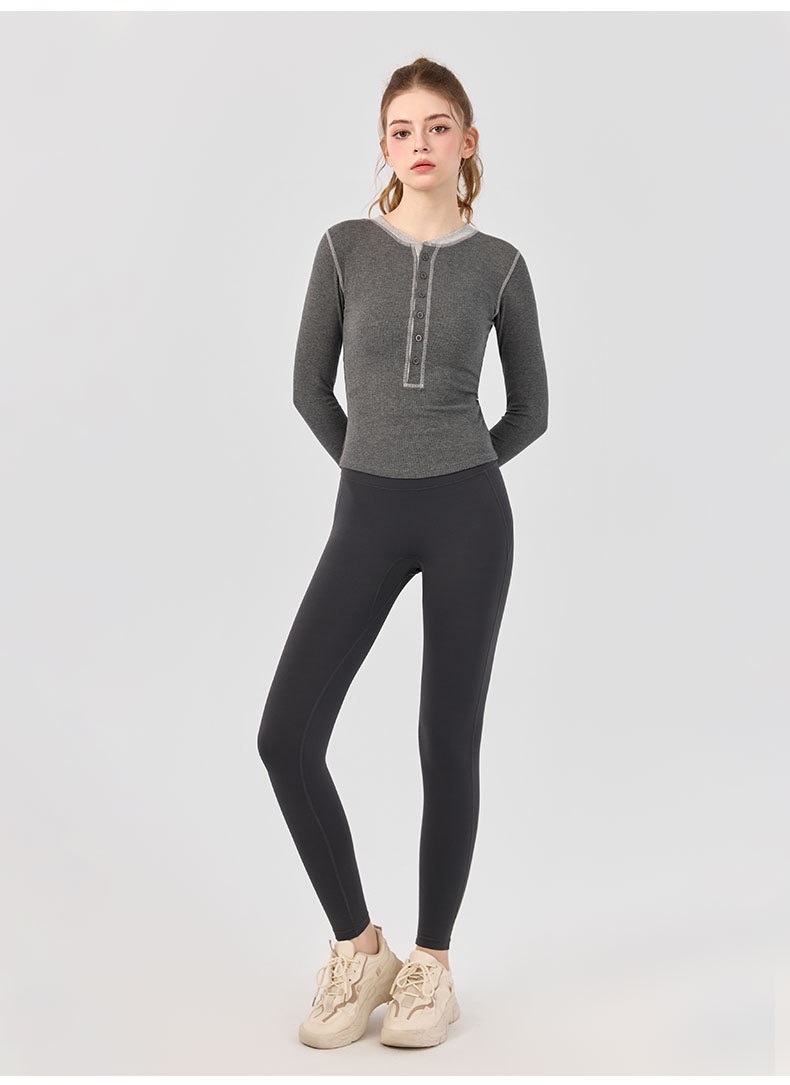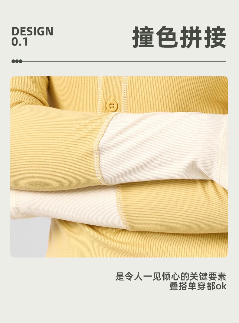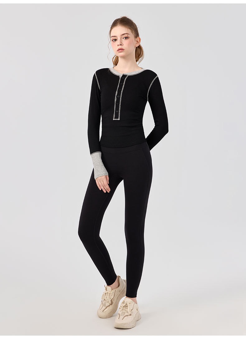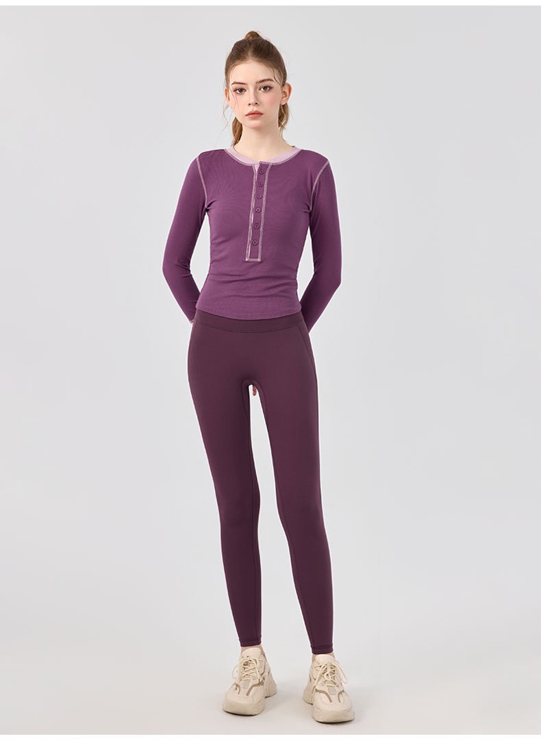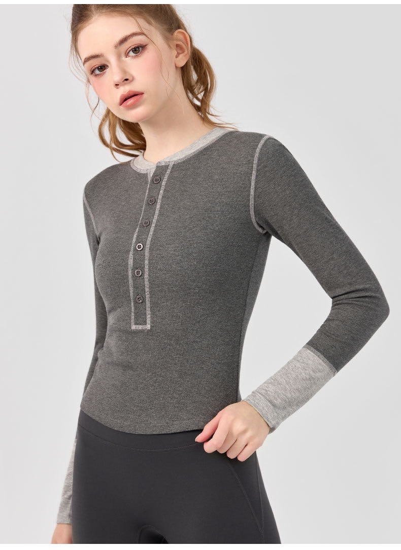 初秋新款撞色拼接瑜伽上衣女 半开门襟气质圆领长袖BMMZ-341