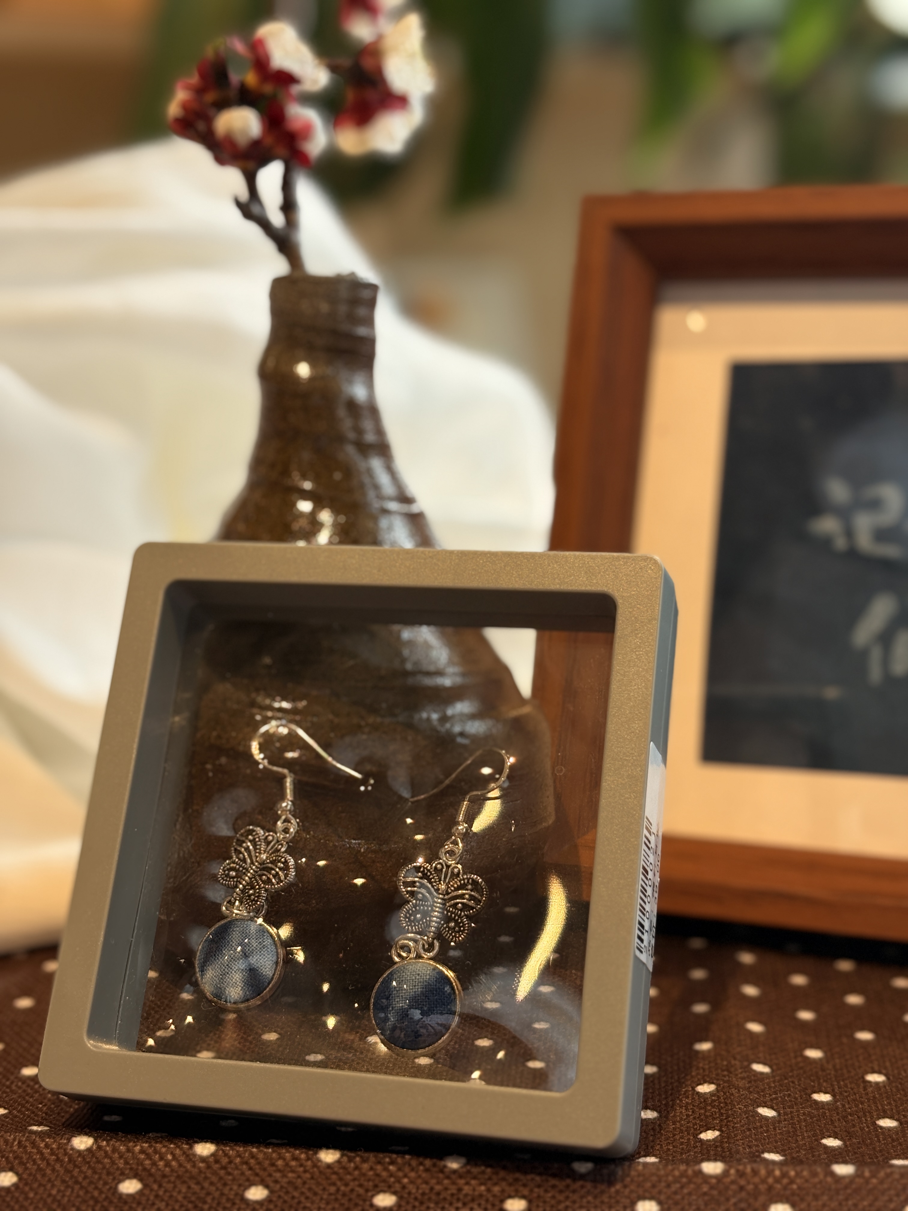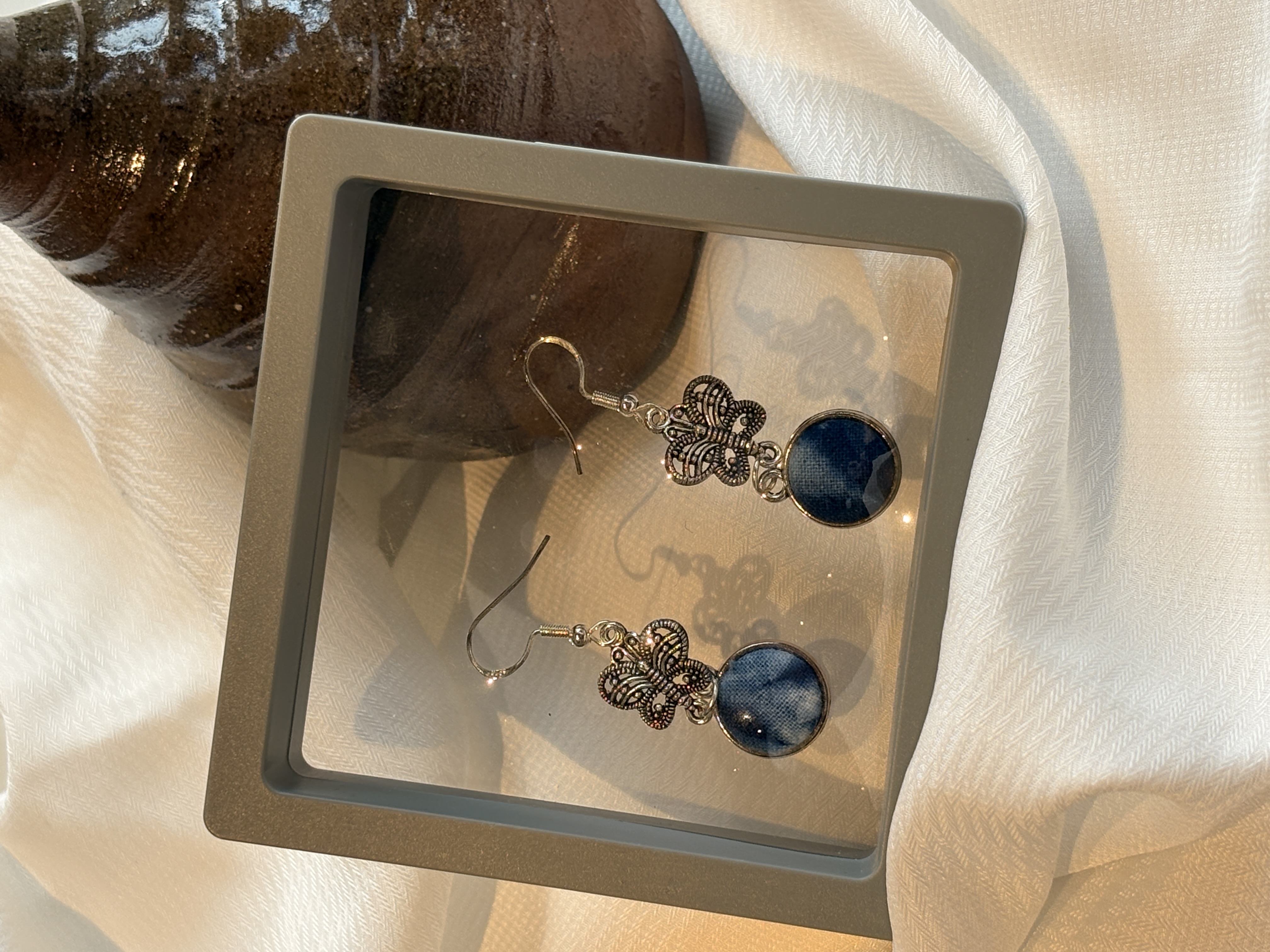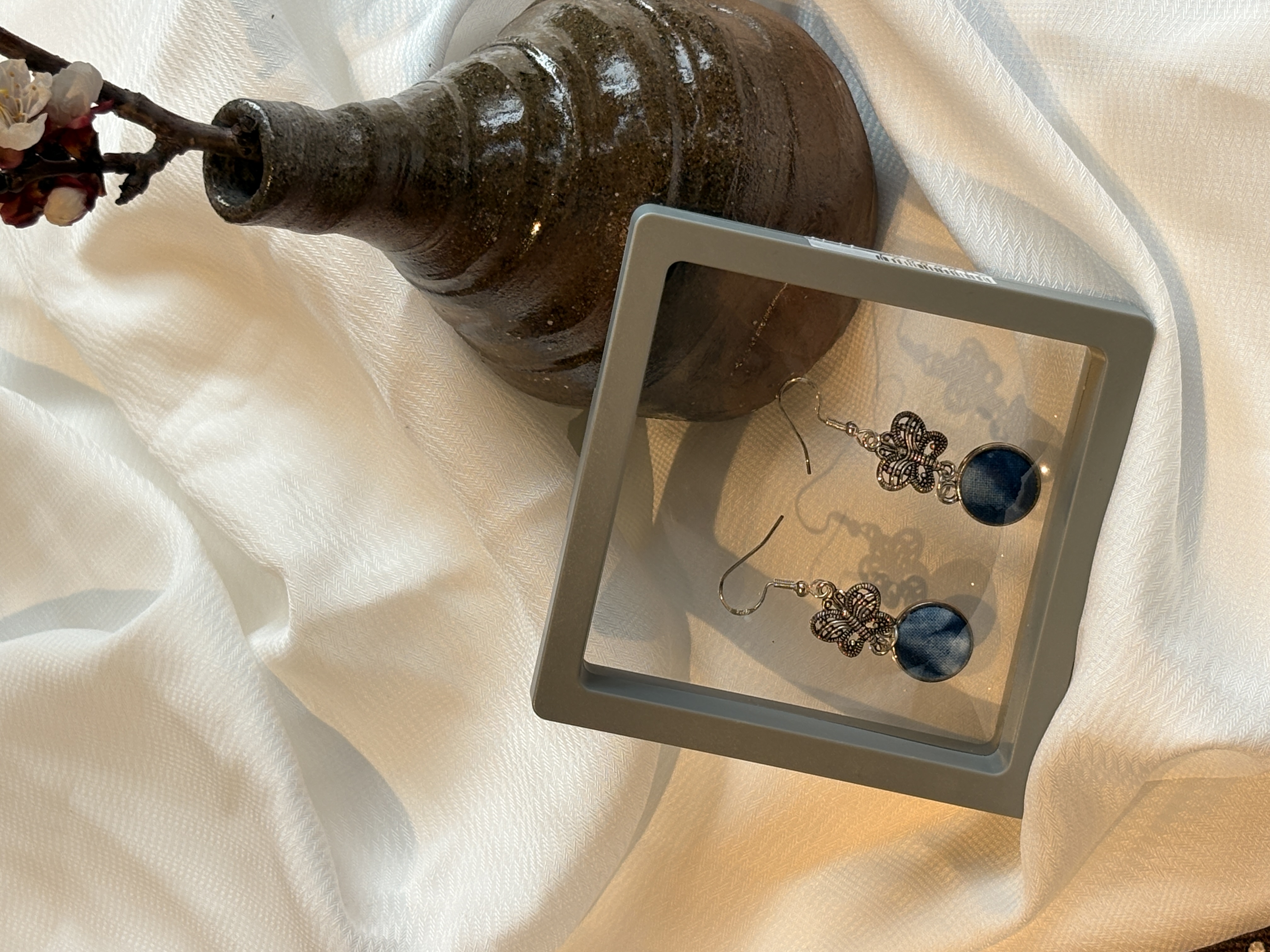 非遗扎染手作耳环草木染民族风布艺耳钉手工肌理耳饰