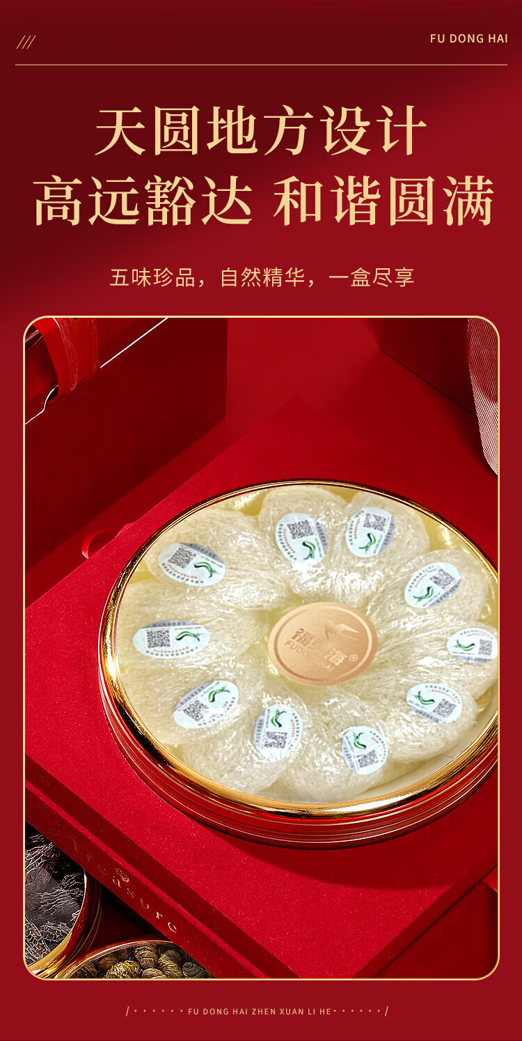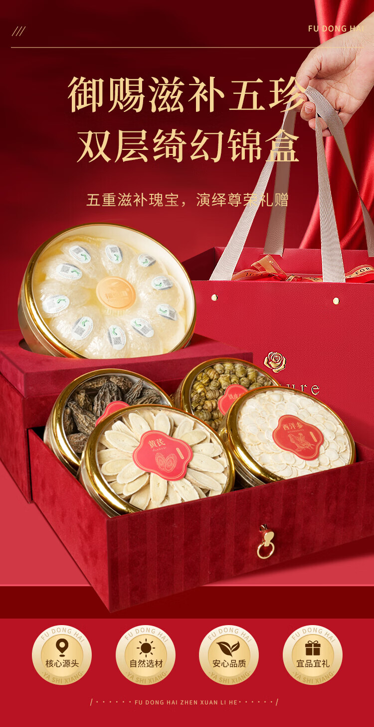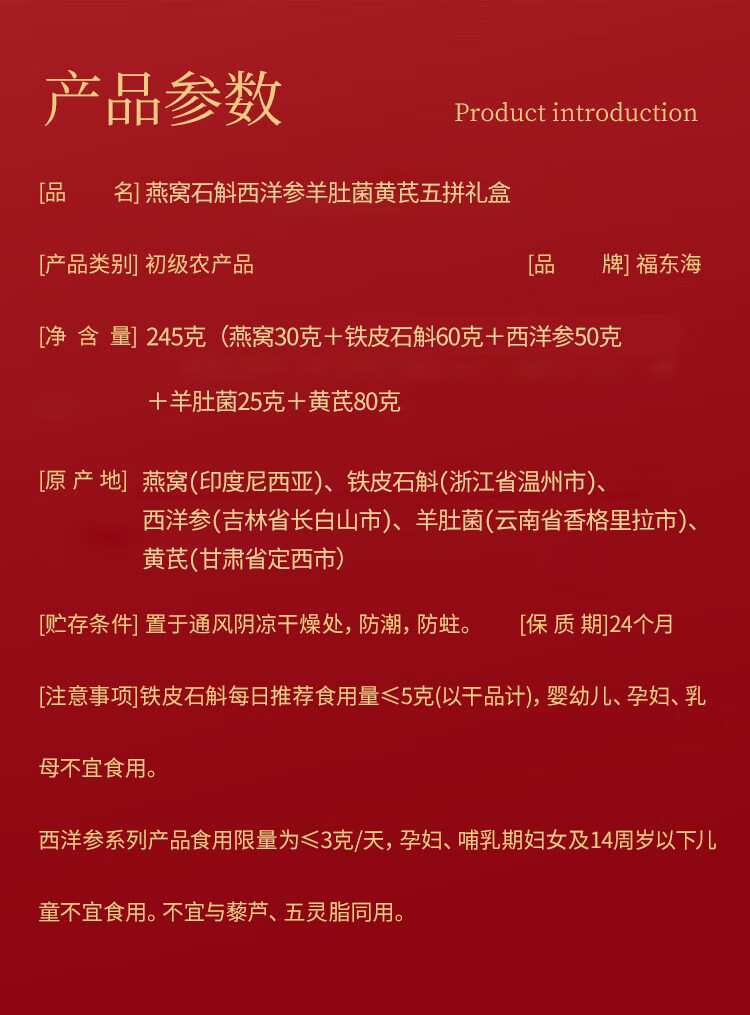 福东海 燕窝铁皮石斛西洋参羊肚菌黄芪五拼礼盒245克(燕窝30克 +铁皮石斛60克+西洋参50克+羊肚菌25克+黄芪80克 )送礼品送长辈礼物