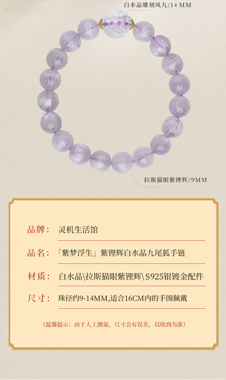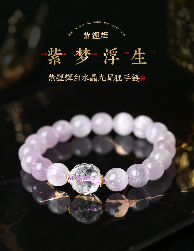 灵机生活馆「紫梦浮生」紫锂辉白水晶九尾狐手链高级小众新款女