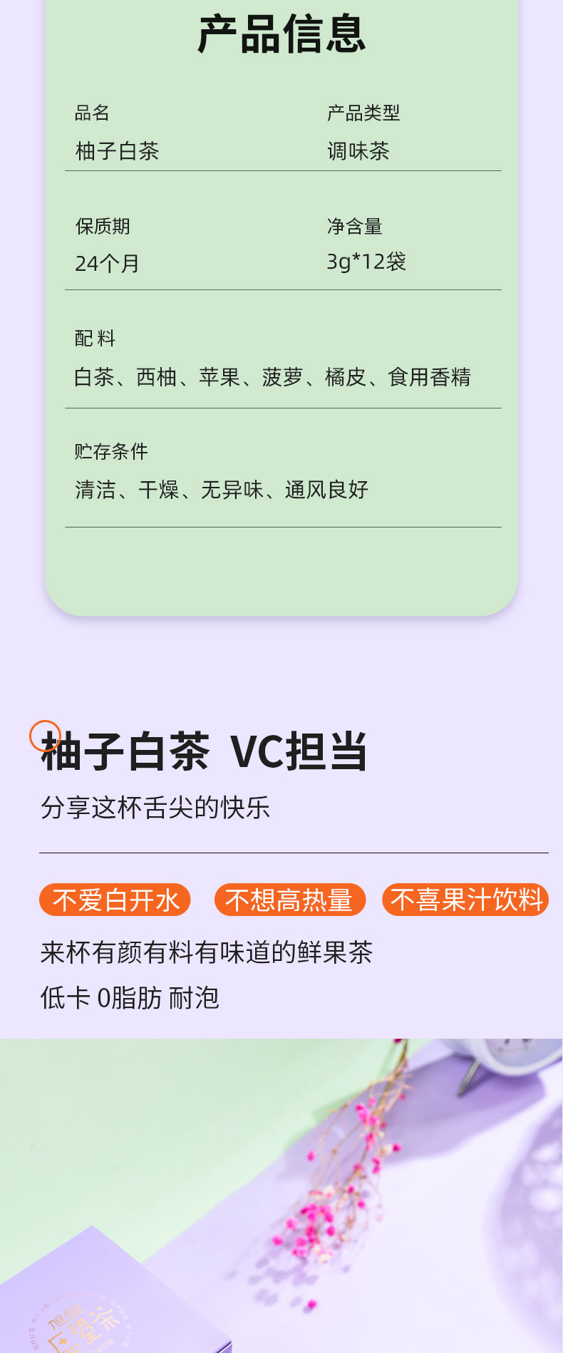 【宜昌助农馆】旭旦愿望茶 柚子白茶 袋泡茶 3g*12袋/盒