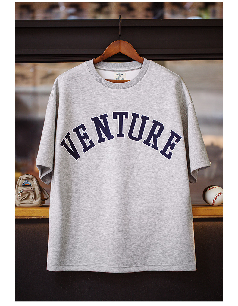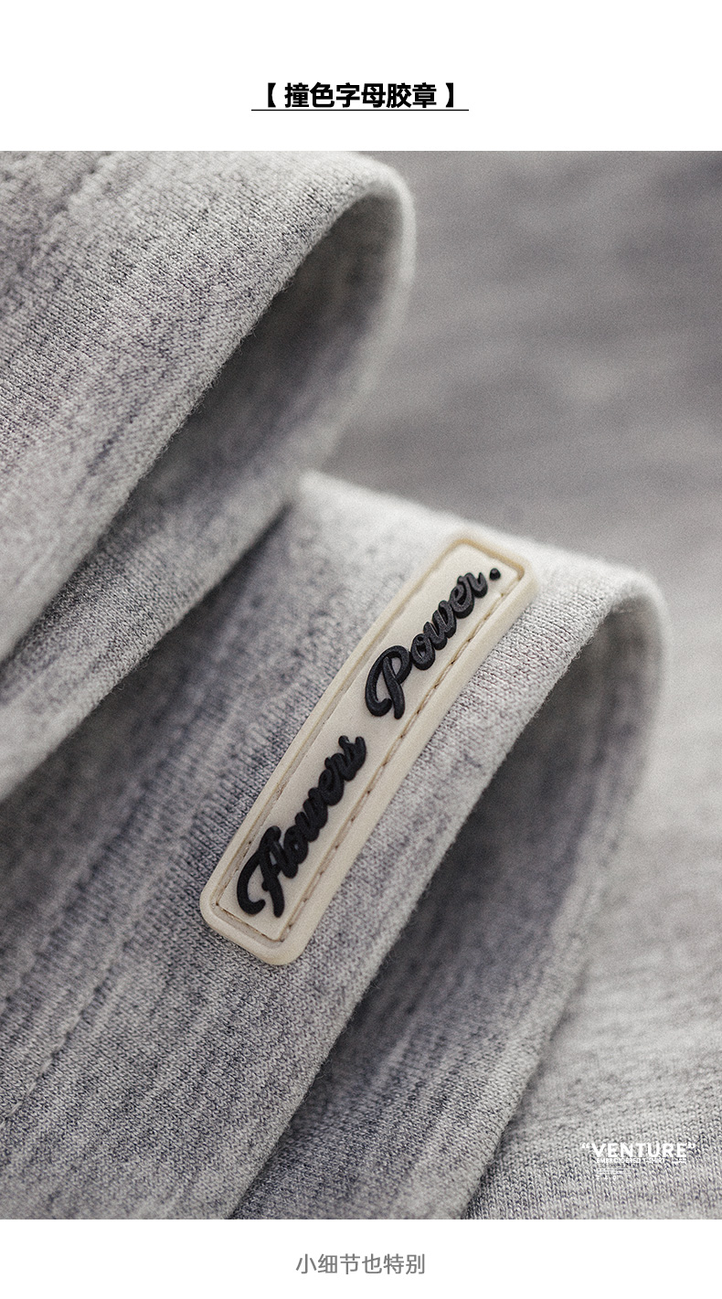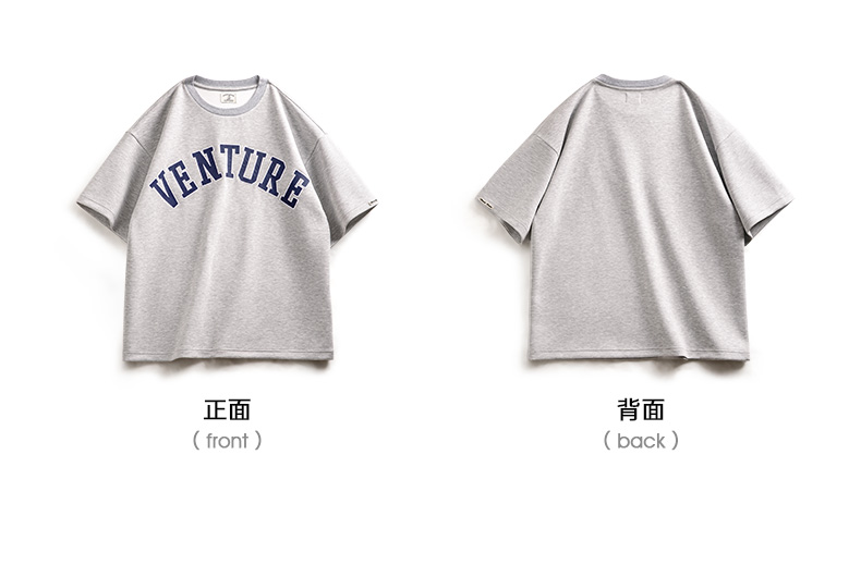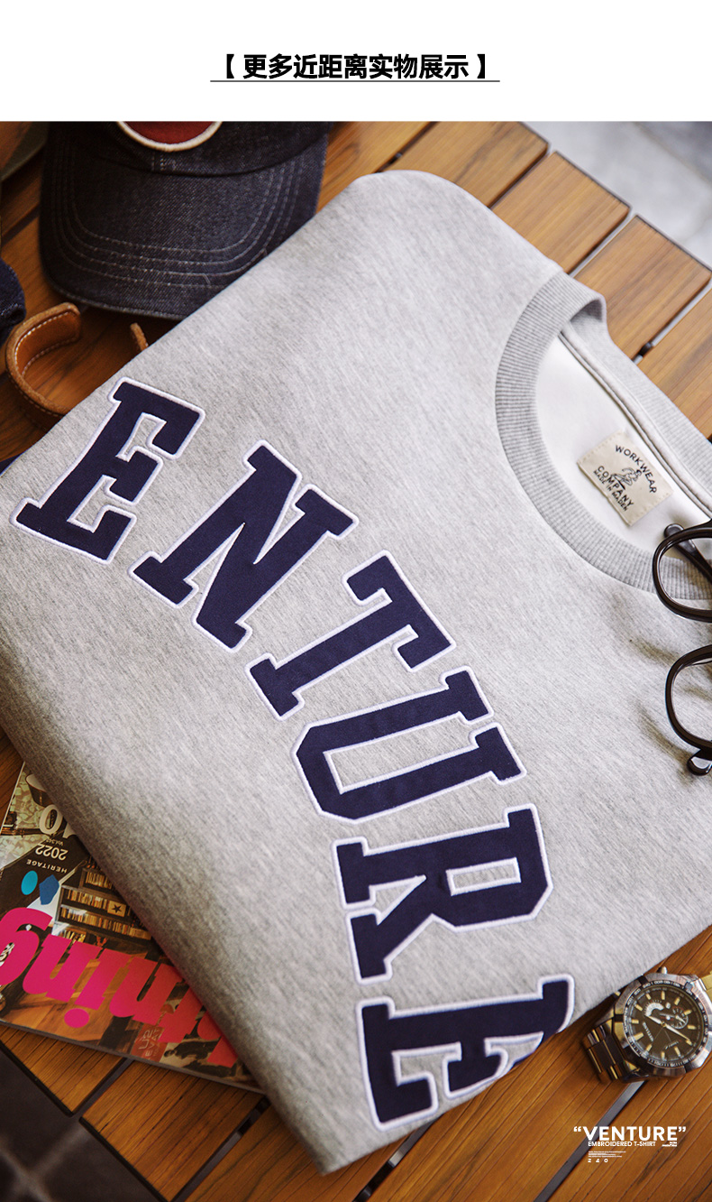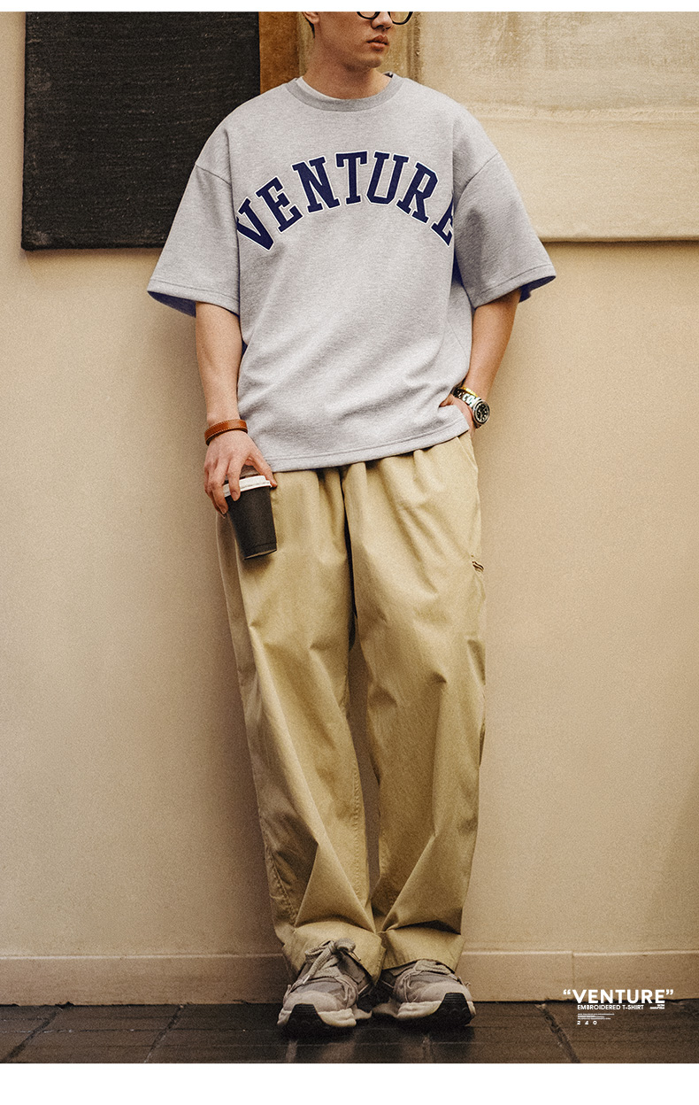 工装优选 美式复古空气层字母刺绣T恤宽松重磅五分袖圆领短袖男夏