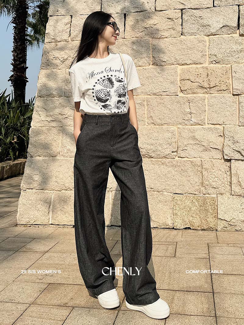 尘衣|26SS松紧腰抽绳直筒牛仔裤