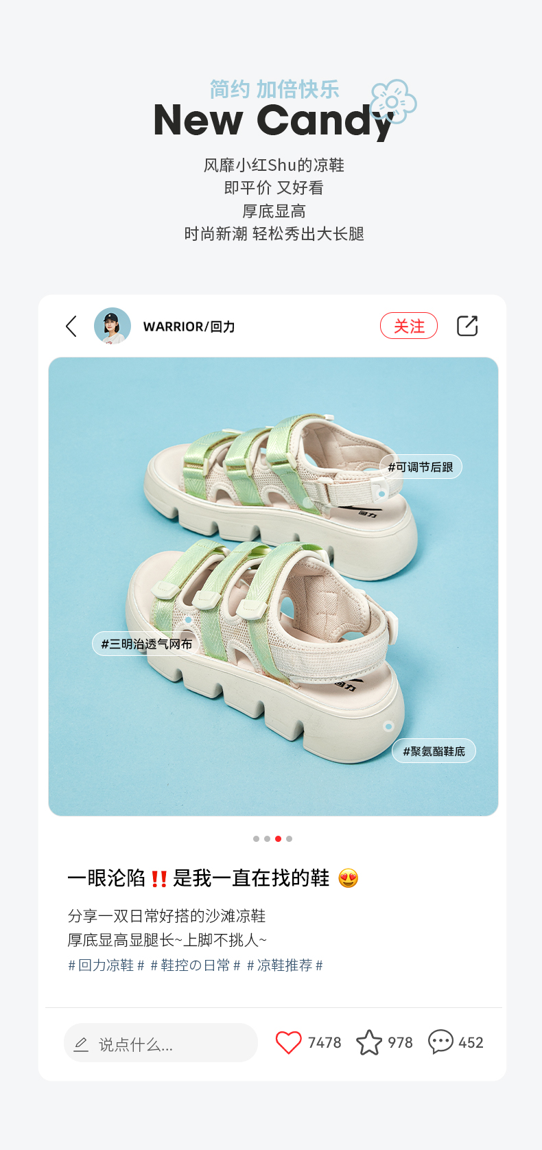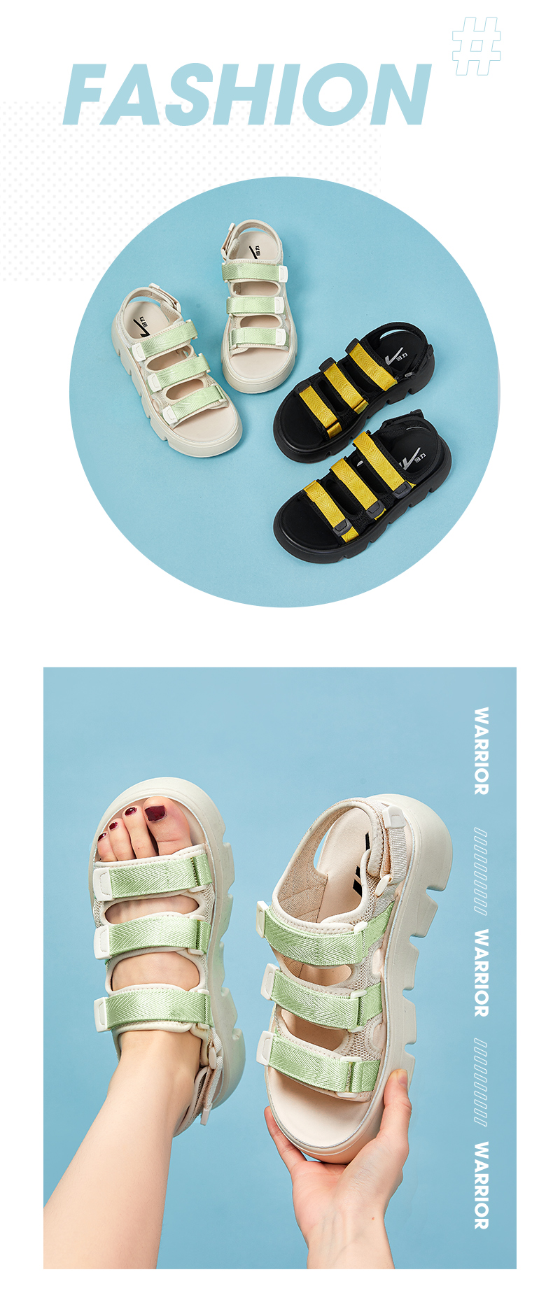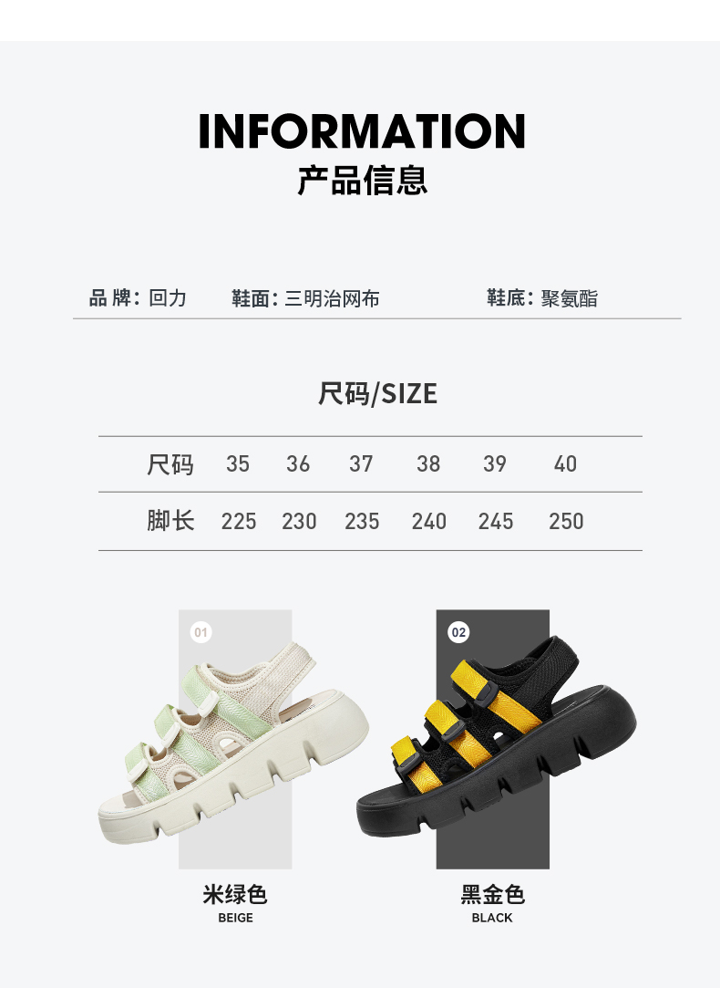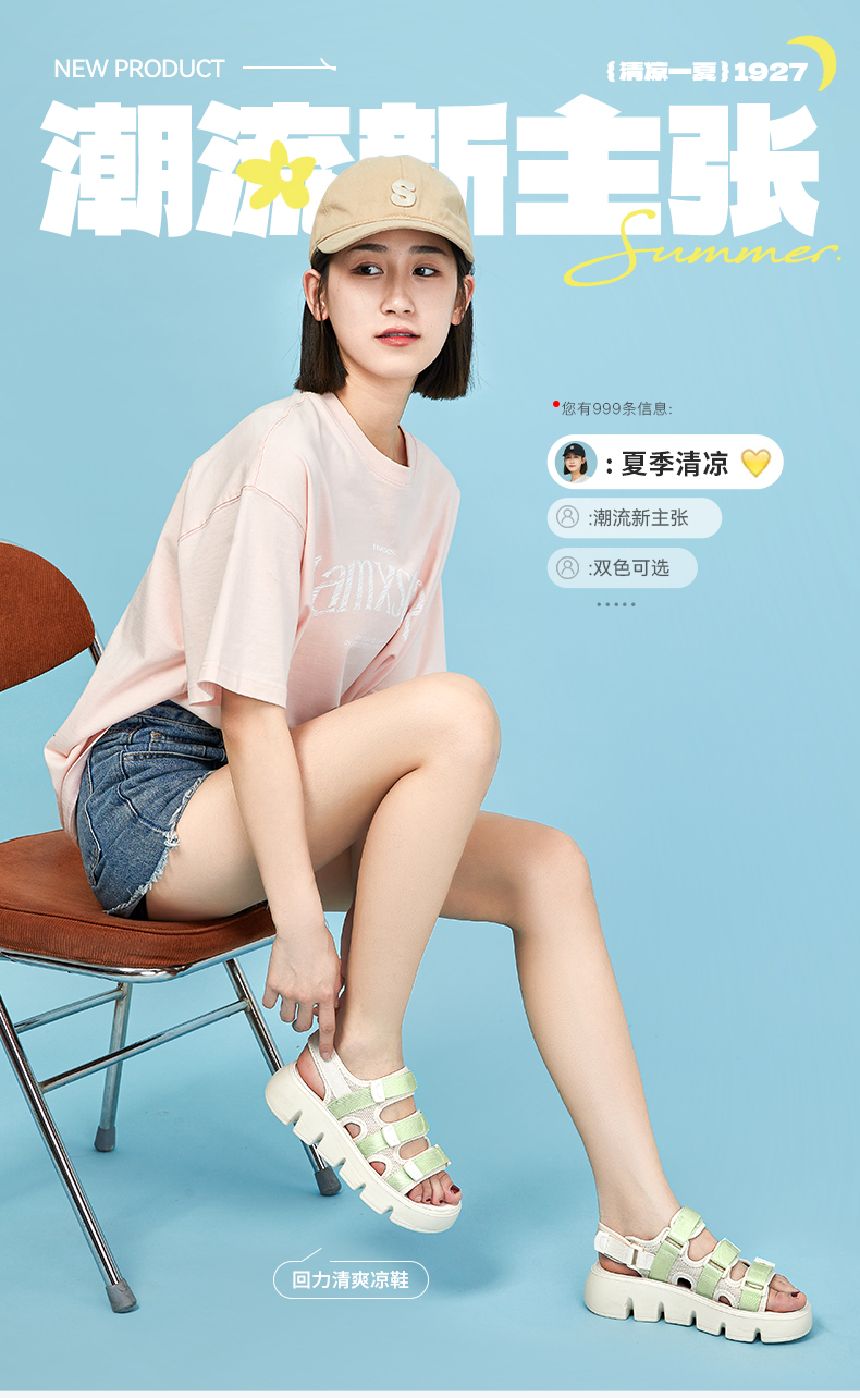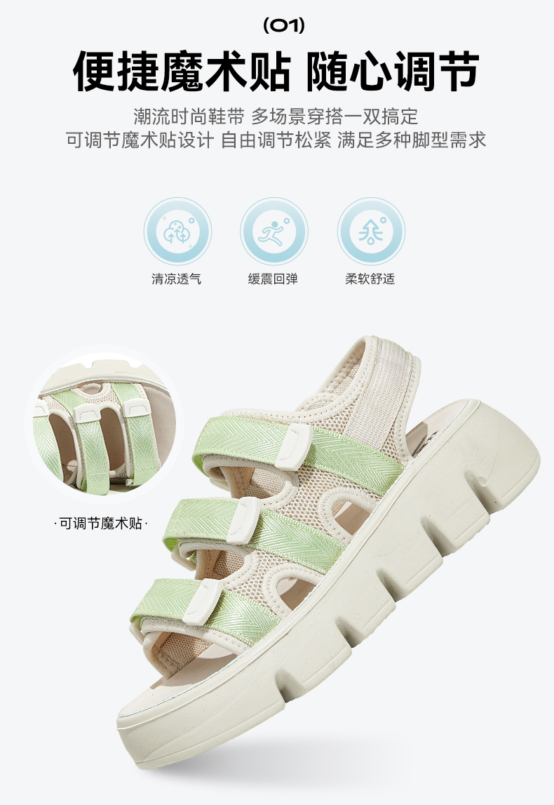 回力凉鞋女款2023年夏季新款女鞋小香风厚底魔术贴运动沙滩鞋子女WSL(WZ)-0660