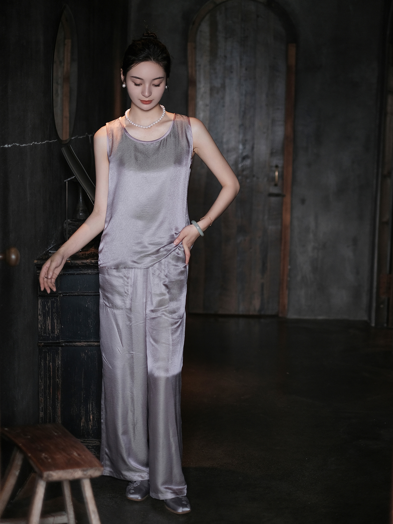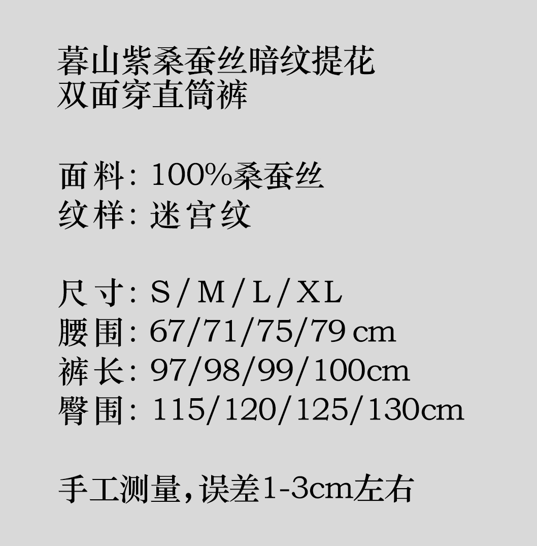 盛唐婧 |暮山紫桑蚕丝暗纹提花双面穿直筒裤