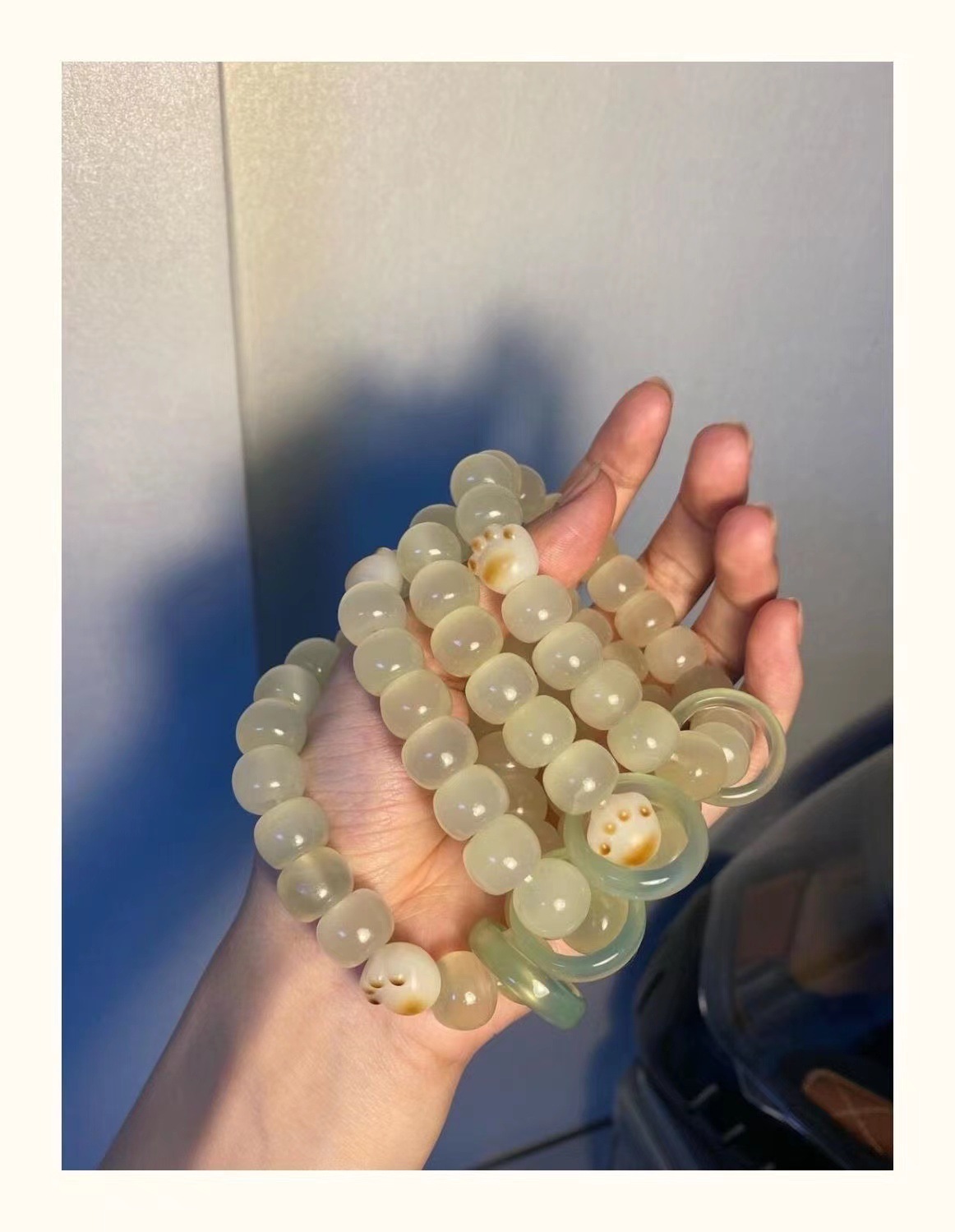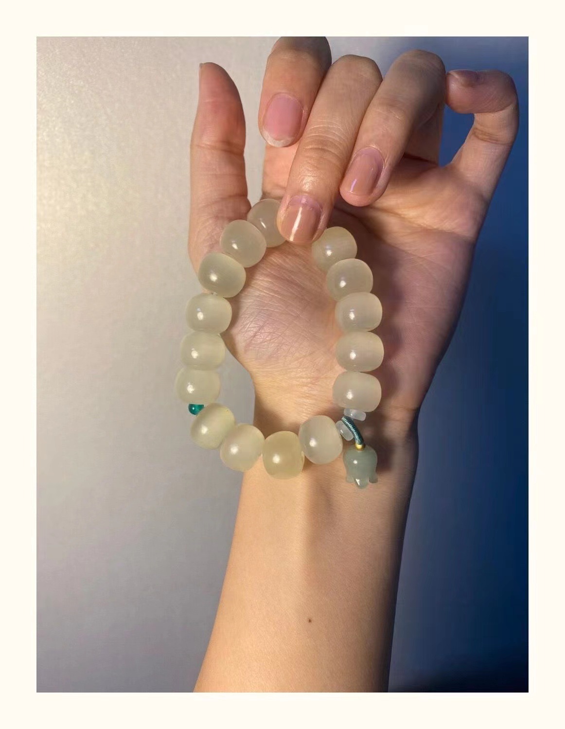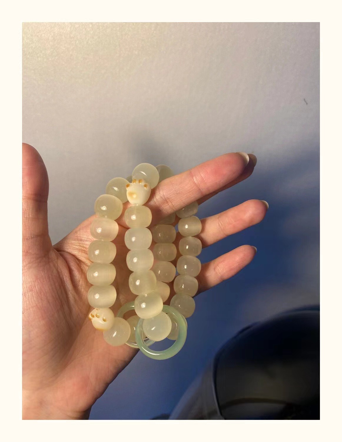 【超值购19.9抢❗青白玉手串】《白茶清欢》猫爪萌趣设计,清新炭烤质感,手腕上的优雅与治愈,码碯跑环手链炭烤猫爪手串饰品礼物QQ
