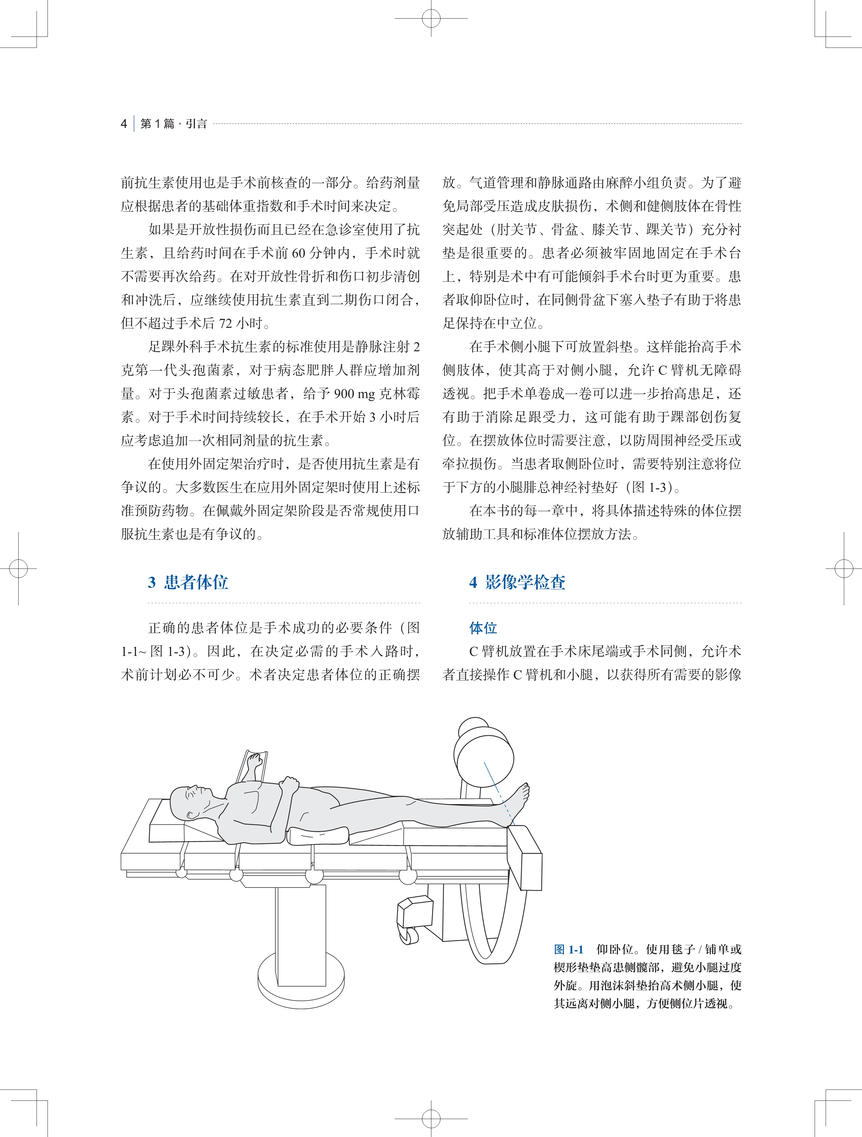 全书文字简洁流畅、重点突出、图文并茂。共分为 8 篇,涵盖了足踝外科几乎所有解剖部位的骨折,包括胫骨远端、踝关节、跟骨、距骨、中足、跖骨和籽骨骨折。在每一章中,编者先总体介绍该部位骨折的解剖特点、损伤机制、骨折分型、临床检查、治疗方法(包括常用的手术入路)、术后处理、合并症和预后,然后挑选了大量典型病例,将每个病例按照AO/OTA 骨折分型由简单到复杂的顺序逐一排列,使读者能够在通览全书后,对所有不同类型足踝骨折的诊疗都了然于胸,从而提高不同类型足踝骨折的处理能力。