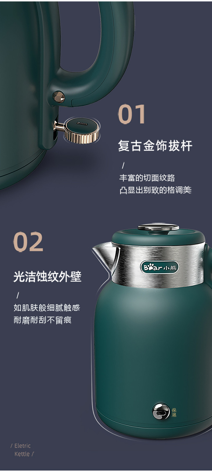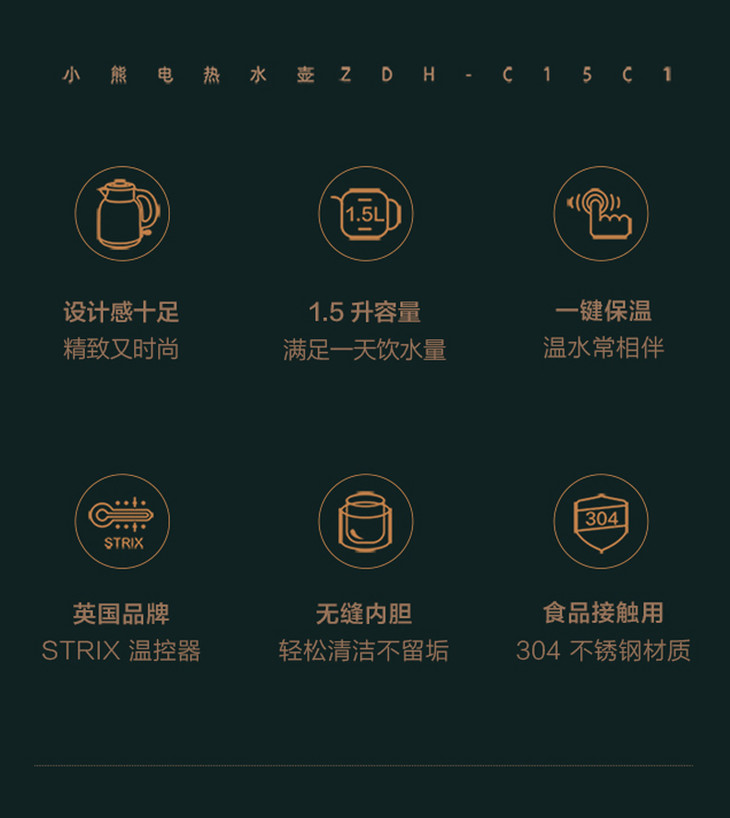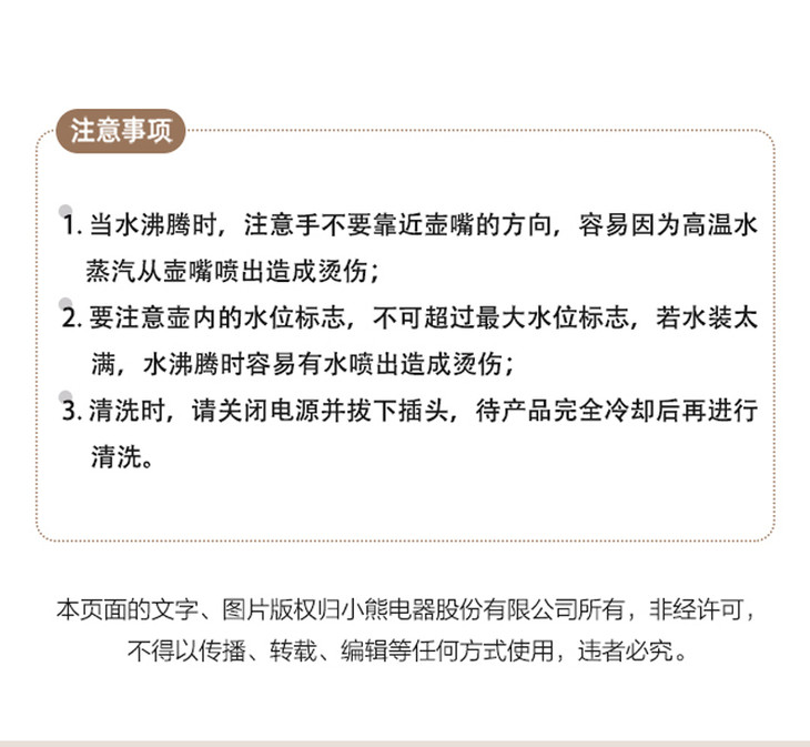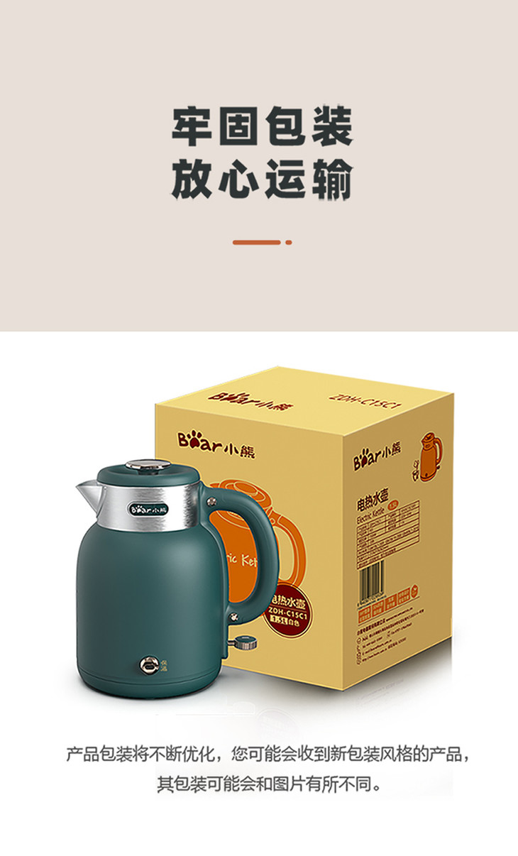 【家用电器】小熊电热水壶ZDH-C15C1家用办公室保温一体式不锈钢烧水壶煮水壶