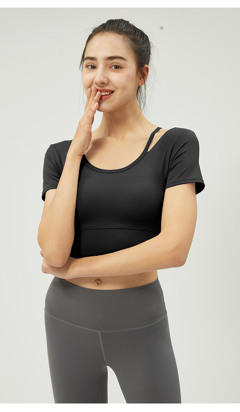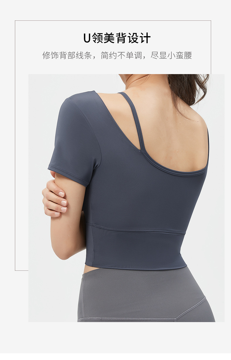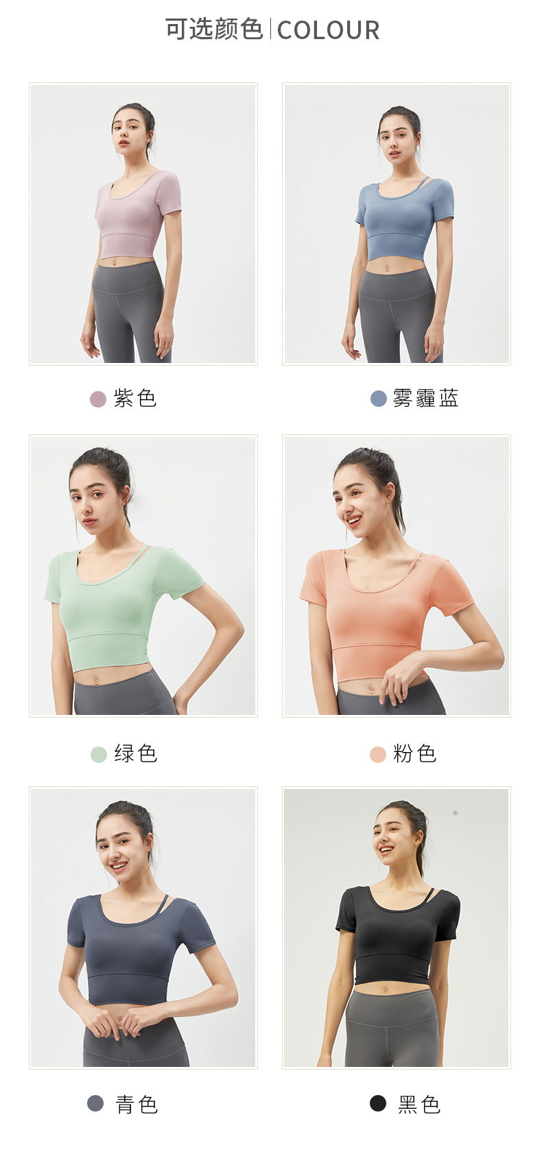 新款瑜伽服女短袖 含胸垫露脐美背运动T恤跑步健身上衣 YN 000 17-21