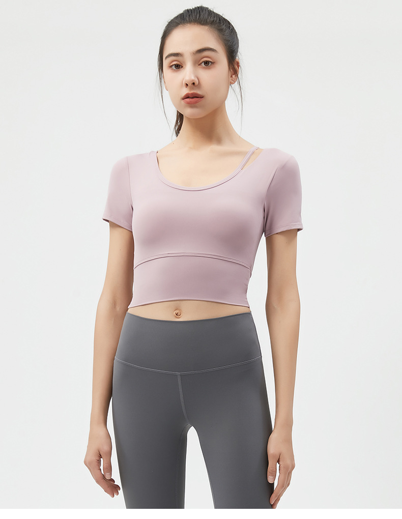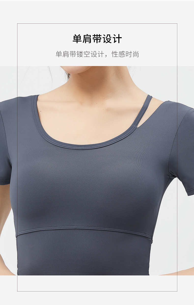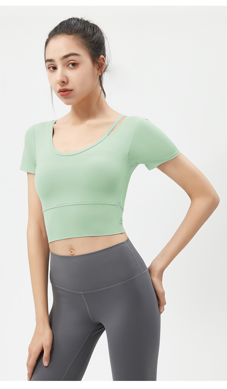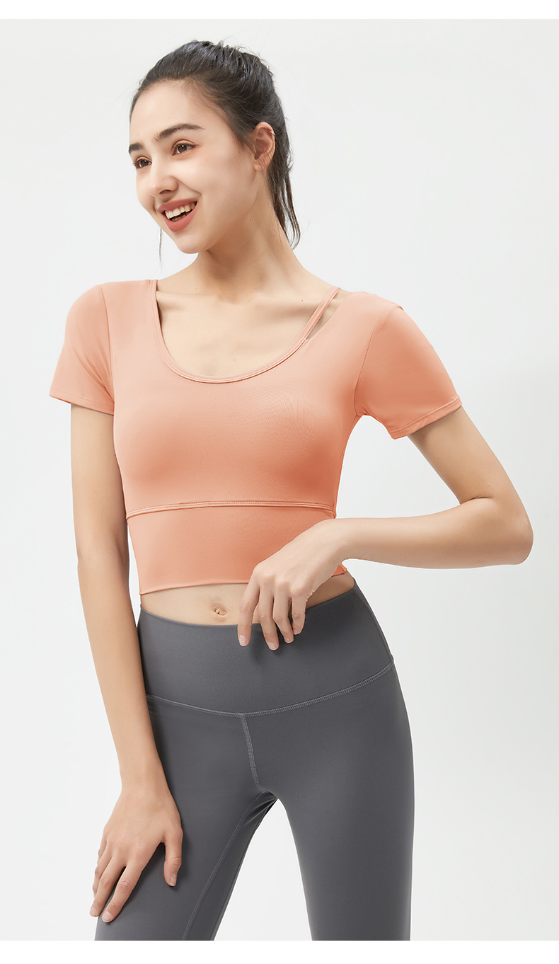 新款瑜伽服女短袖 含胸垫露脐美背运动T恤跑步健身上衣 YN 000 17-21