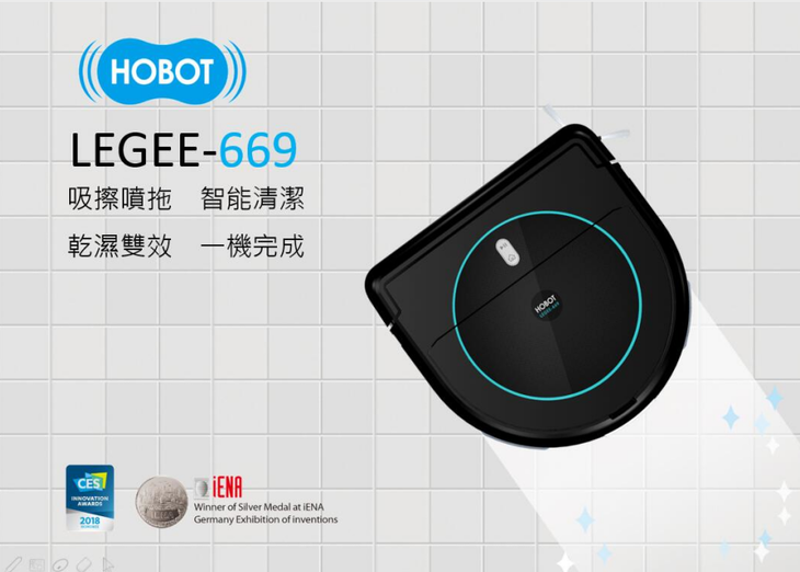 玻妞HOBOT扫地机器人擦拖扫吸喷一体全自动智能擦地机器人669无线