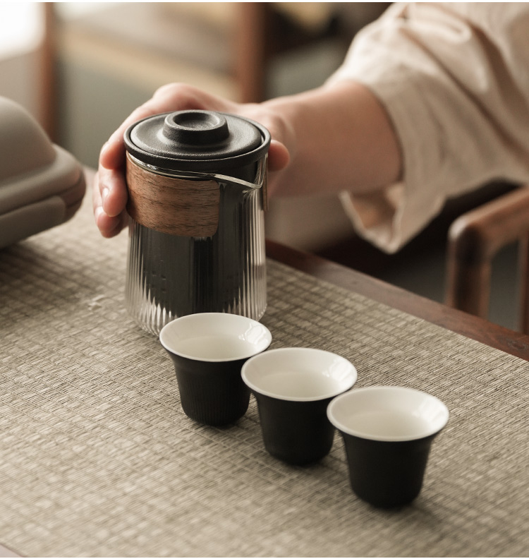 永利汇茶具五件套快客杯随身杯旅行茶具简约通用玻璃防烫功夫茶杯