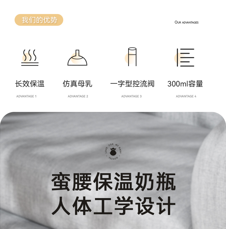英氏300ml小蛮腰保温奶瓶N18A(奶白)