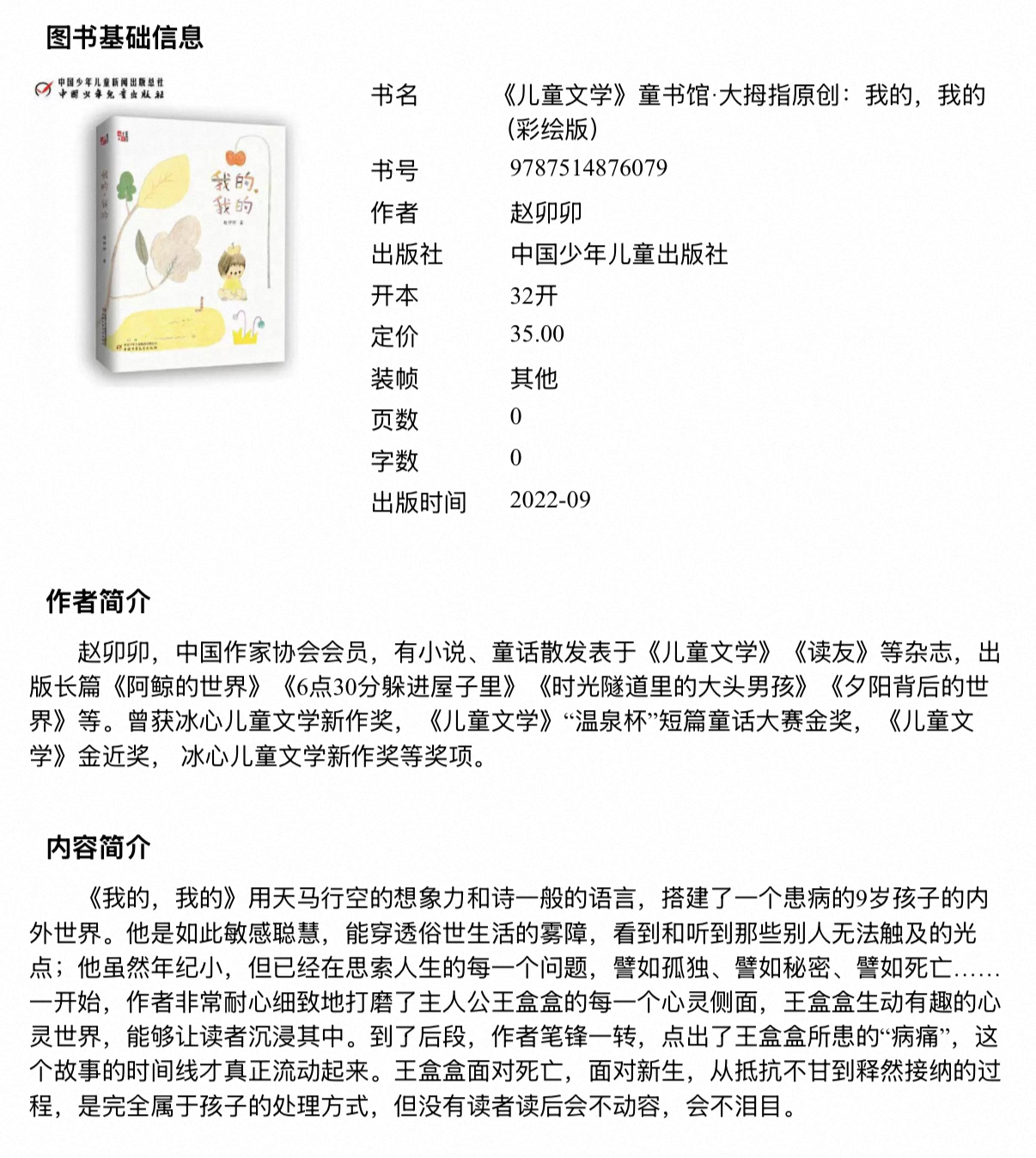 《儿童文学》童书馆:大拇指原创——我的,我的